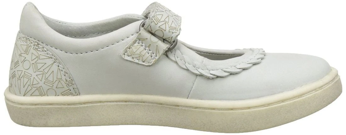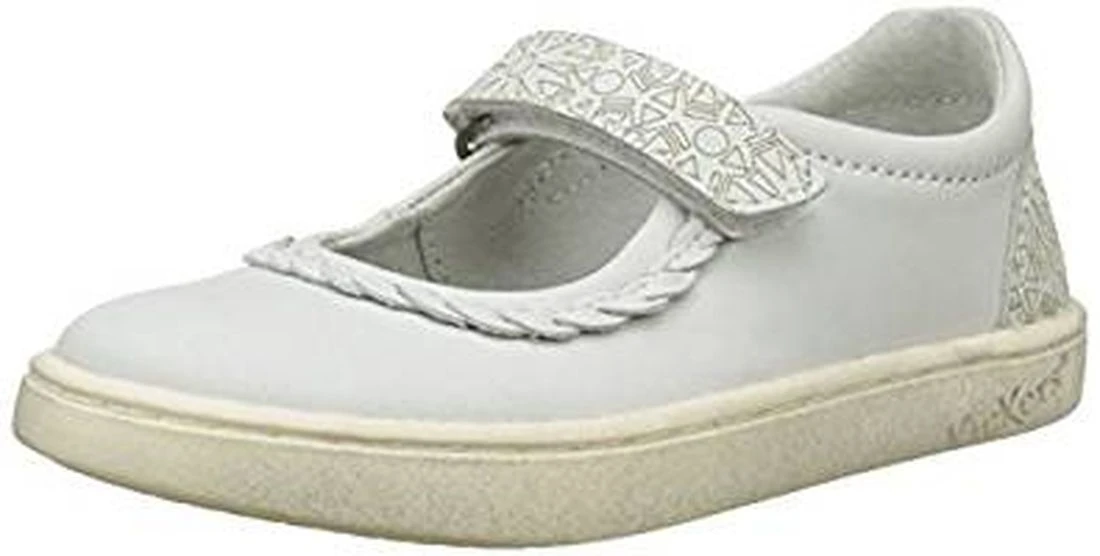 Ballerines blanches de la marque Kickers modèle Lydie pour femme.Dessus, doublure et première cuir.Détails tresse de cuir et cuir gravé.Fermeture par bande velcro.Semelle extérieure en gomme.