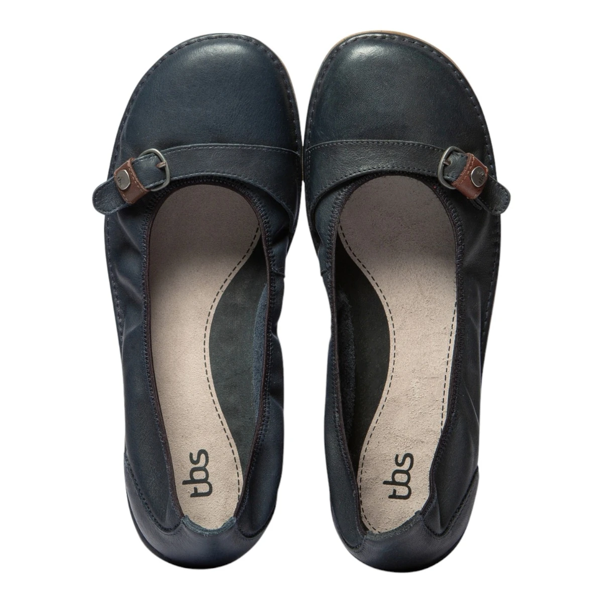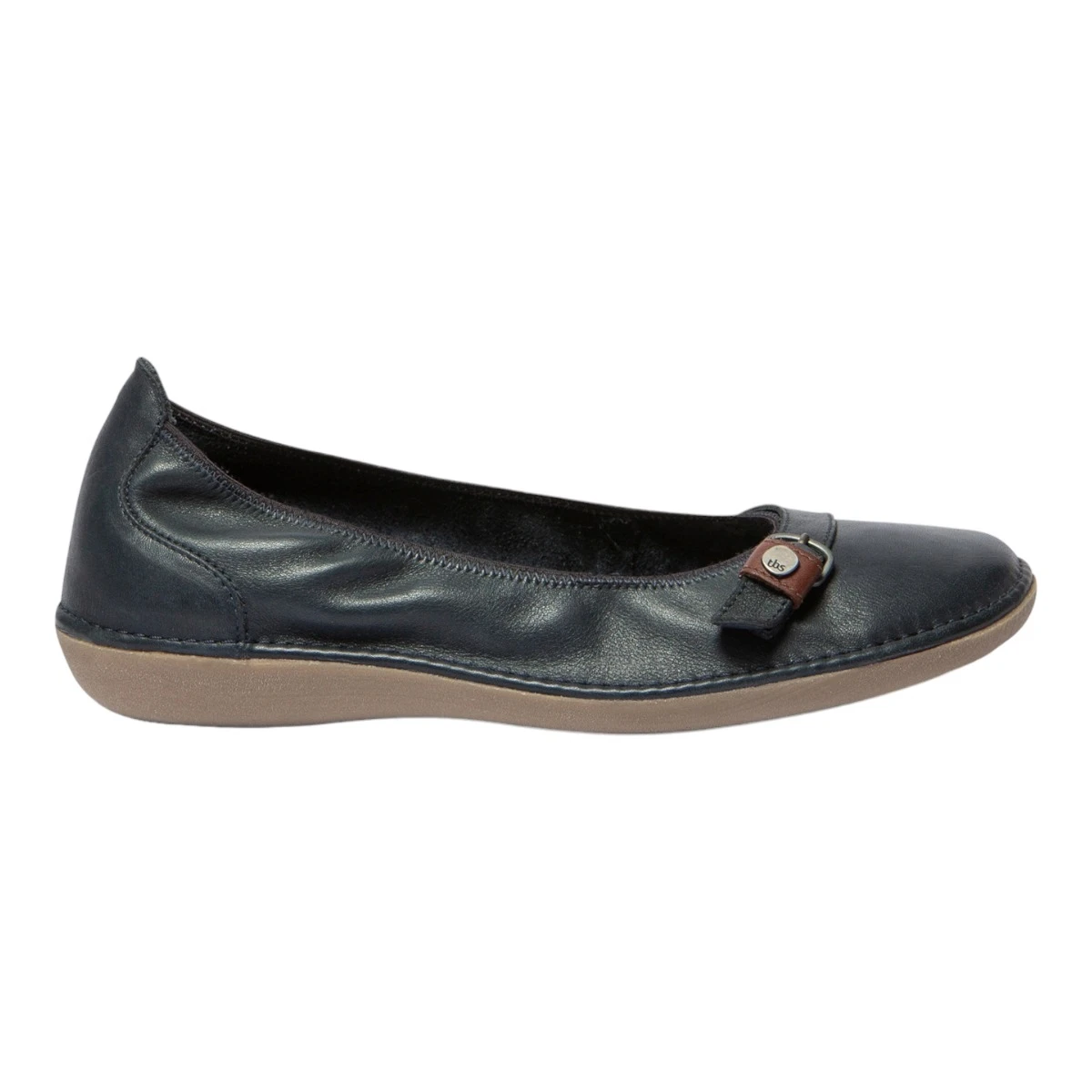 Ballerines femme en cuir de marque TBS modèle Maline.Cuir souple. Semelle intérieure en cuir. Bout rond.Semelle souple en gomme.Coloris bleu matelot.