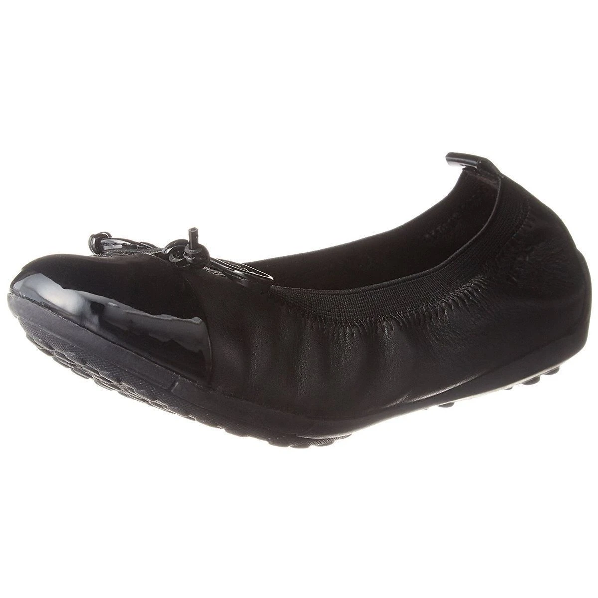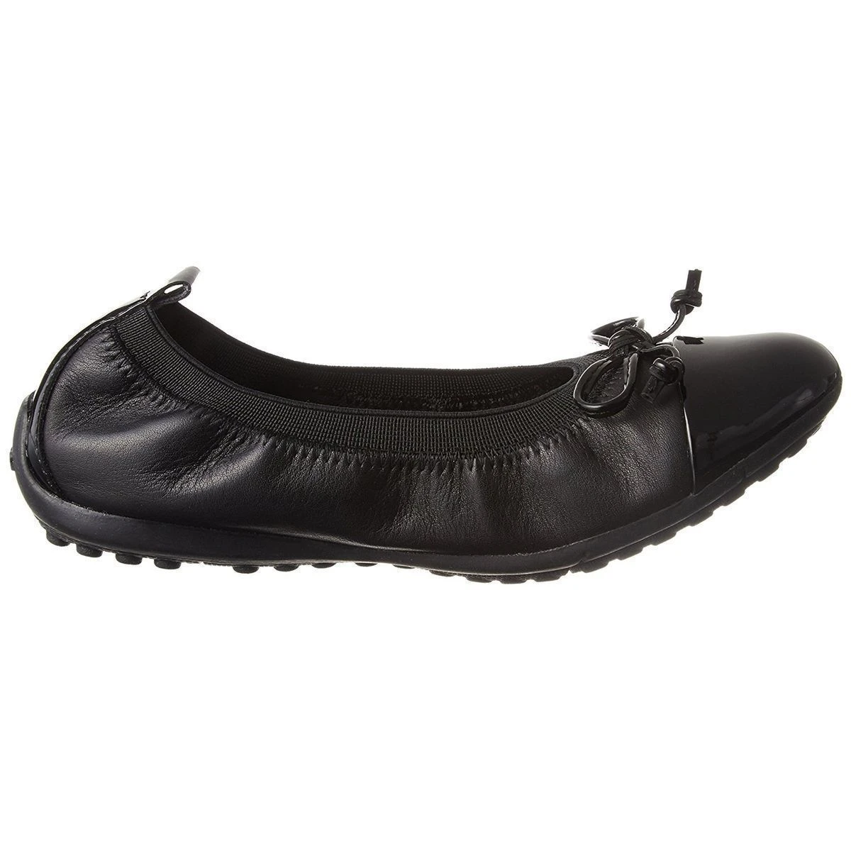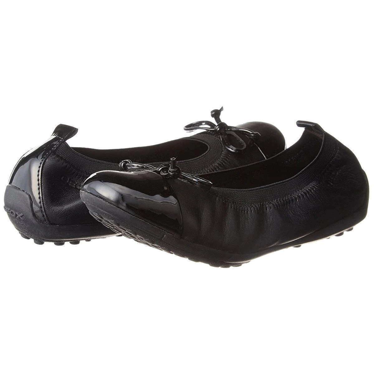 Ballerines pour femme de marque Geox modèle Piuma.Tige en cuir lisse avec bout et contrefort en cuir verni noir. Noeud sur le devant. Contour élastiqué pour plus de confort. Semelle de propreté en cuir. Semelle extérieure souple en gomme. Coloris : noir.7 pièces jointes