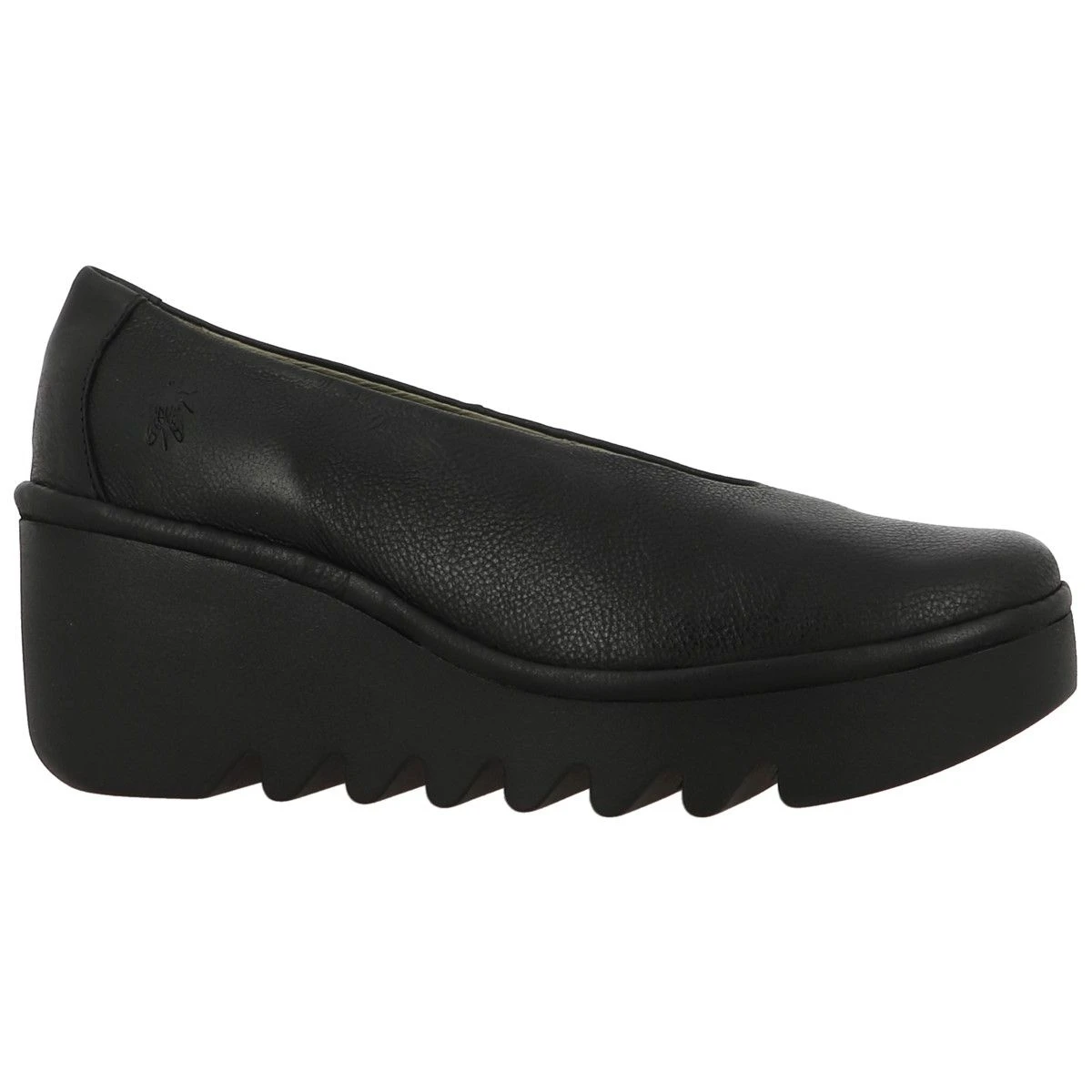 Chaussures compensées à enfiler tout cuir pour femme signées Fly London.