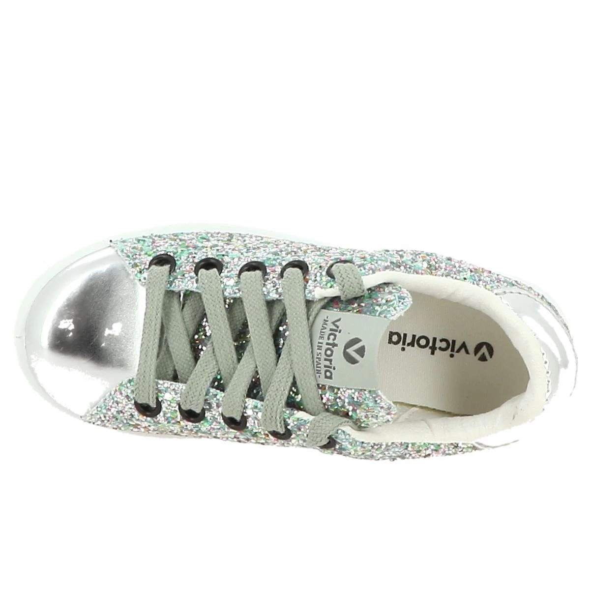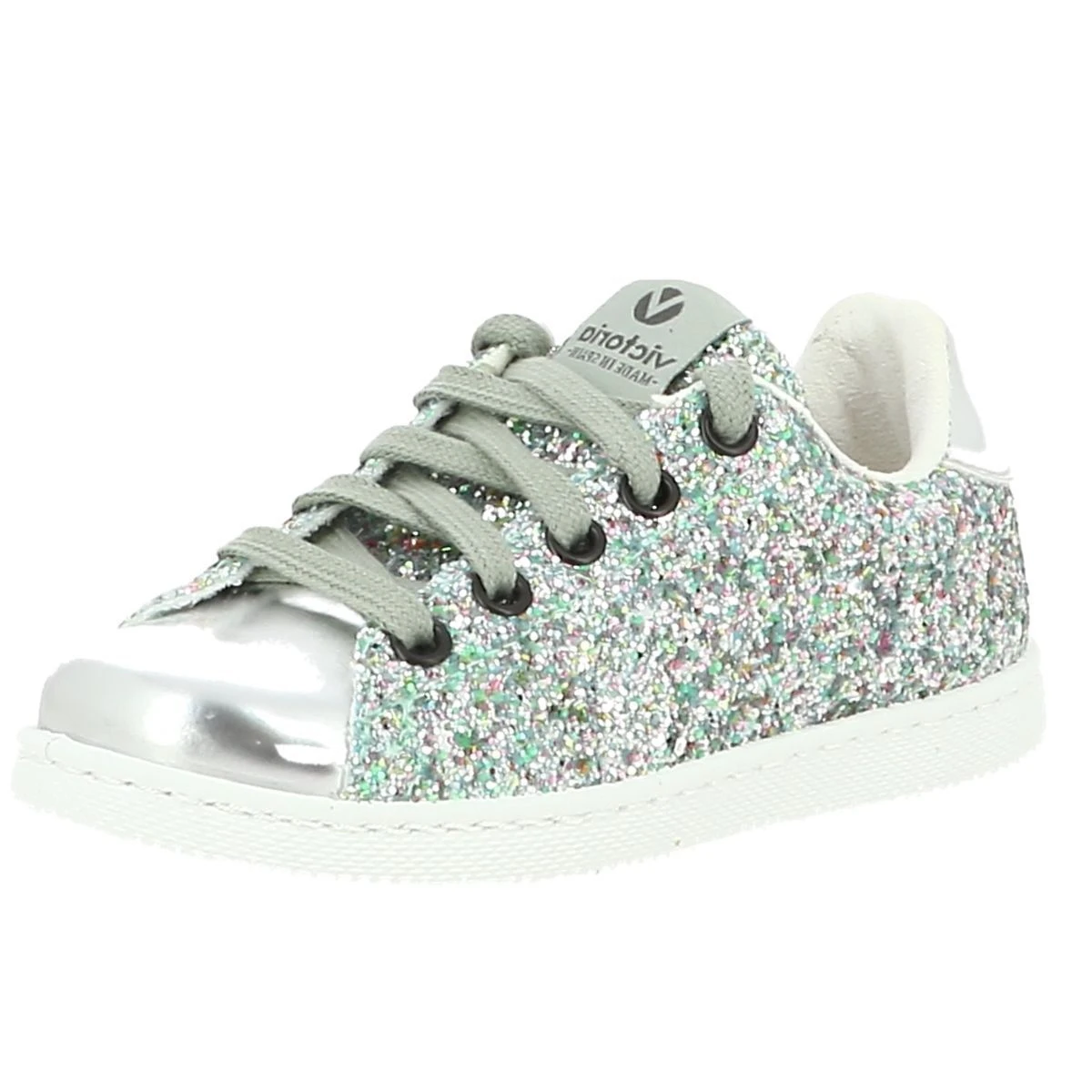 Baskets paillettes Victoria pour fille.Doublure en textile. Semelle en caoutchouc.Fermeture à lacets.coloris blanc argent.