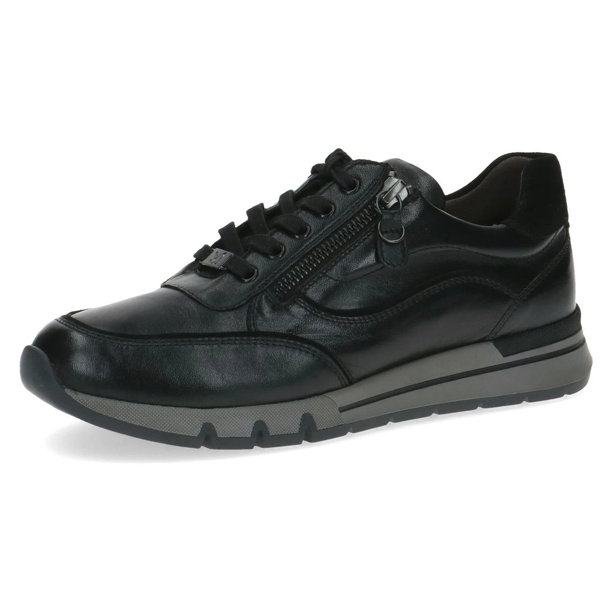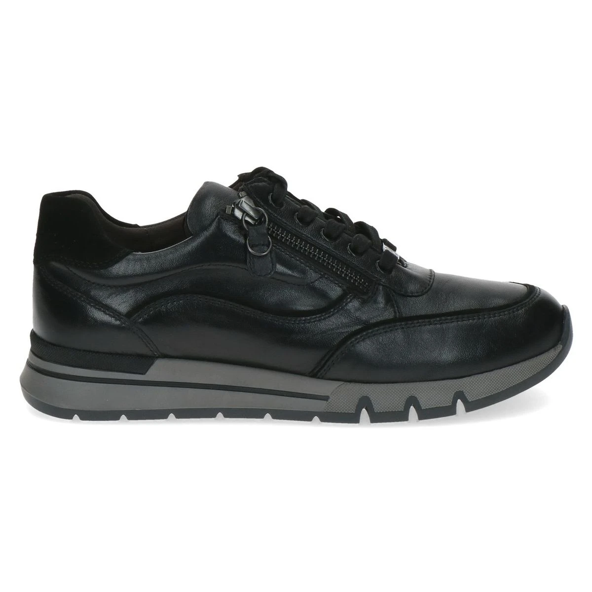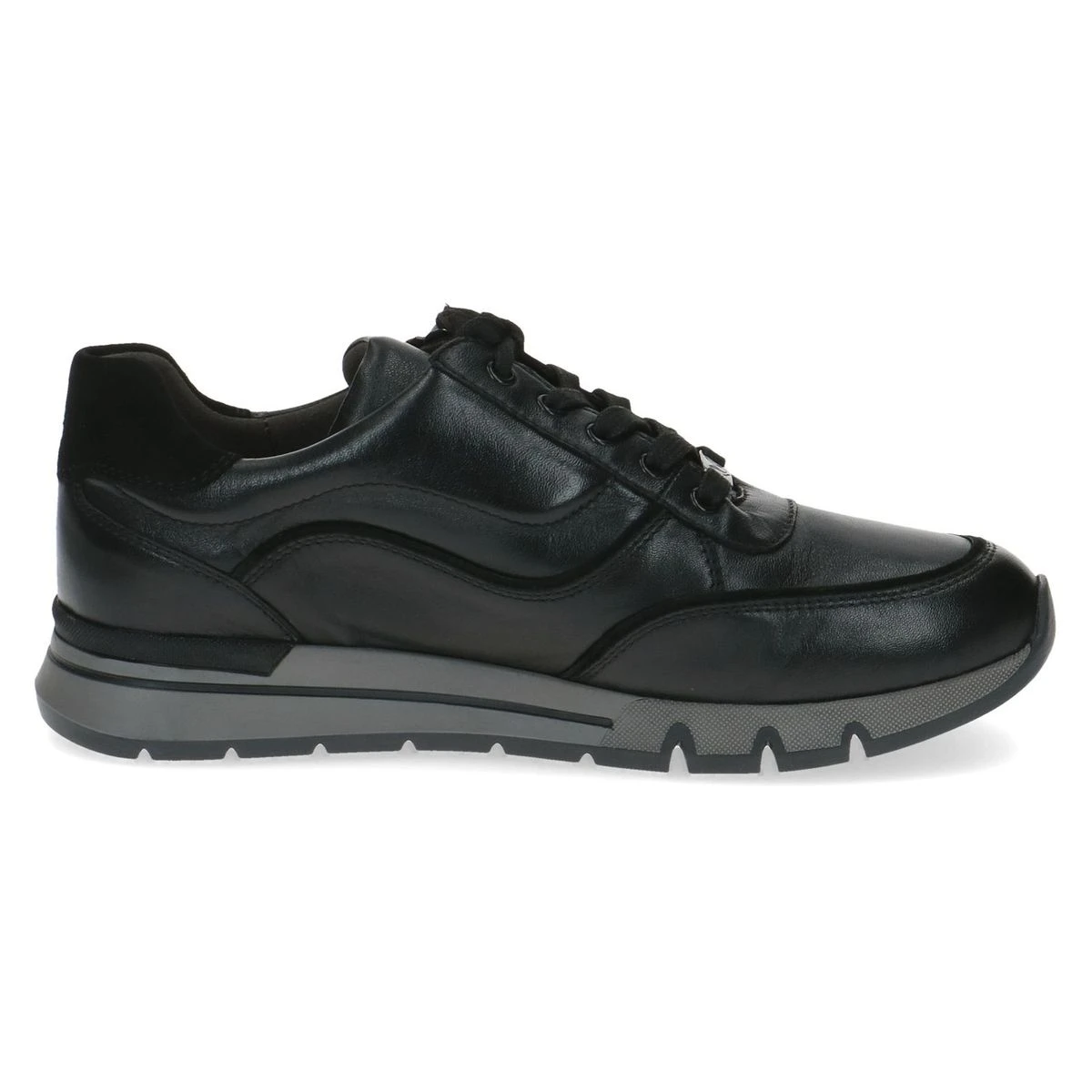 Baskets femme Caprice Confort en cuir lisse noir.