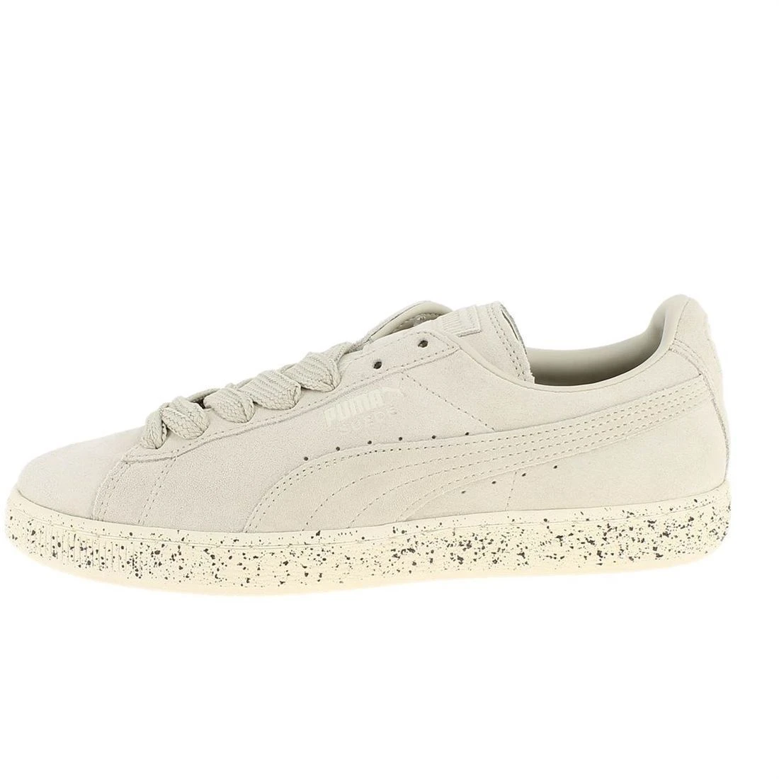 Sneakers Puma 363511 en cuir modèle Suede Classic + Speckle pour homme.Dessus cuir suédé gris clair.Semelle caoutchouc mouchetée de noir.