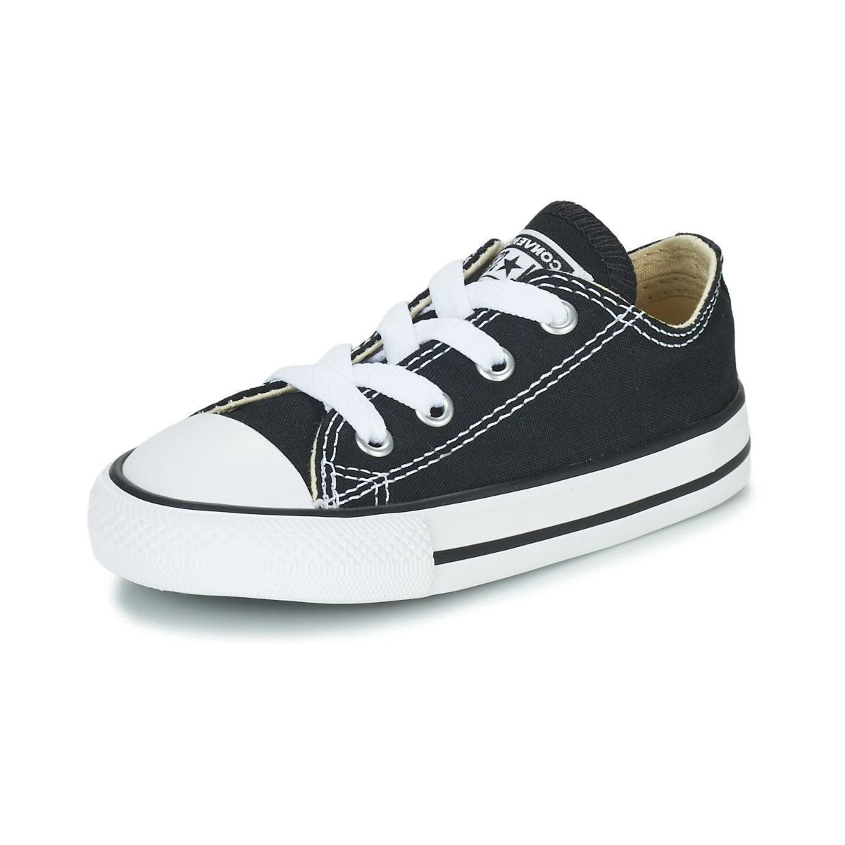 Baskets en toile pour enfant de la marque Converse. En toile confortable, elles sont à croquer sur les petits petons ! Pour être assorti à papa et maman ! Coloris : noir.