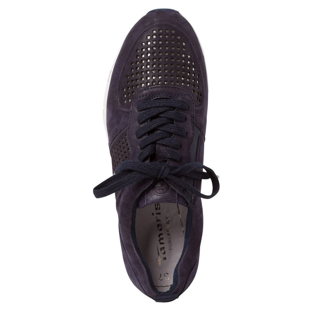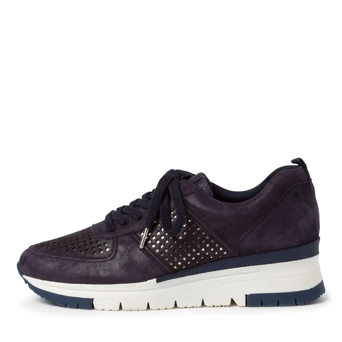 Baslets Femme mode de la marque Tamaris modèle Julia.en cuir avec semelle amovible en cuir .Coloris ; bleu.