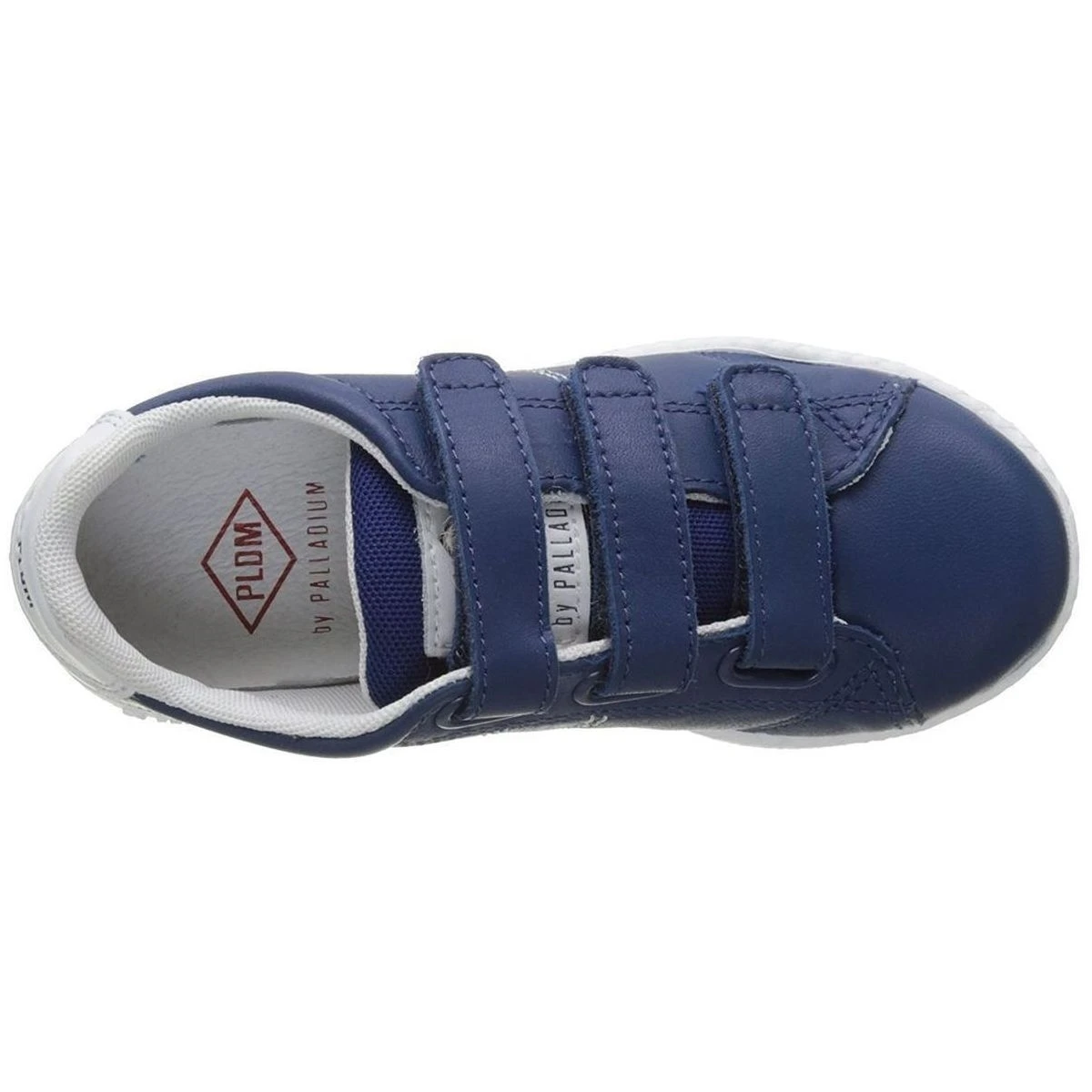 Baskets enfant de marque Palladium PLDM.Fermeture par triple velcros. Première de propreté en cuir. Doublure mesh.Semelle caoutchouc blanche. Coloris : bleu .