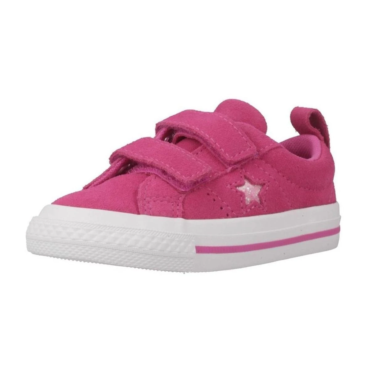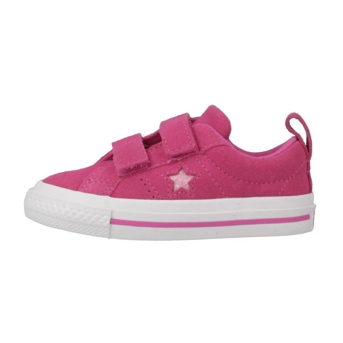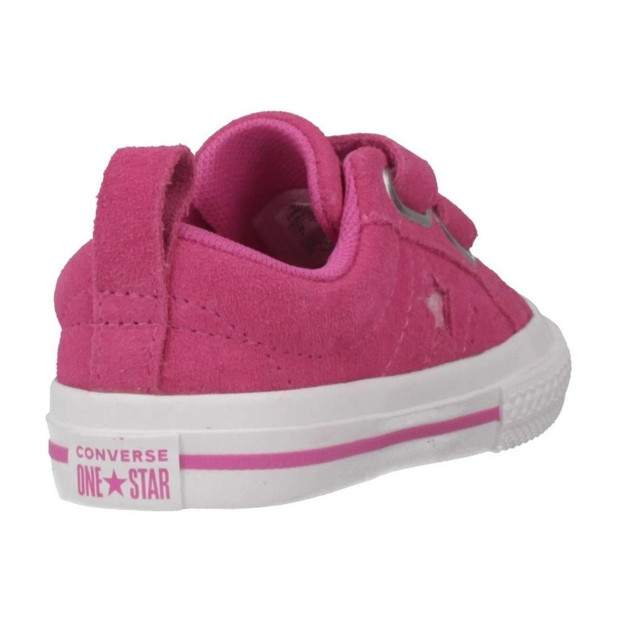 Baskets bébé de la marque Converse modèle One star 2v ox en coloris rose avec fermeture à scratch.