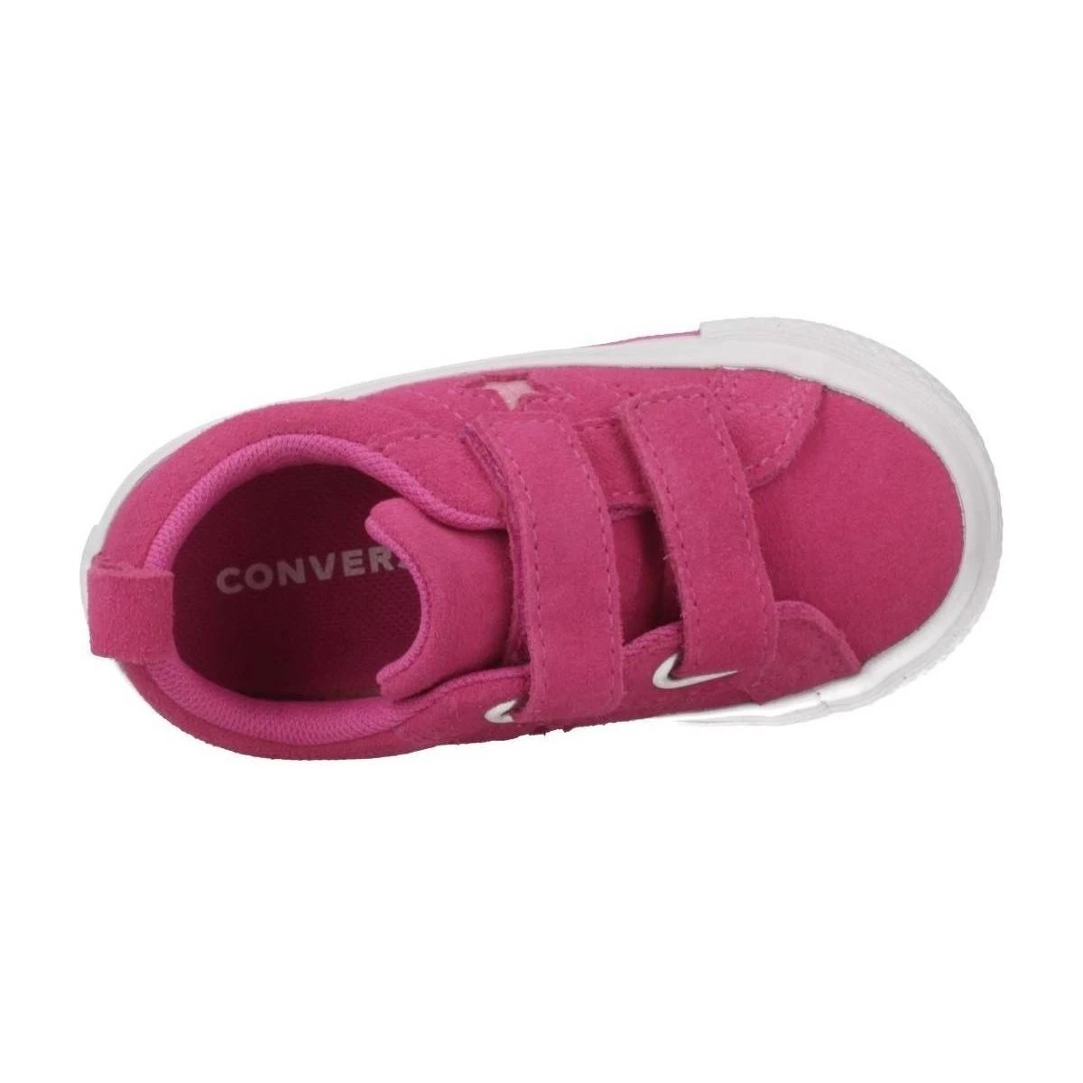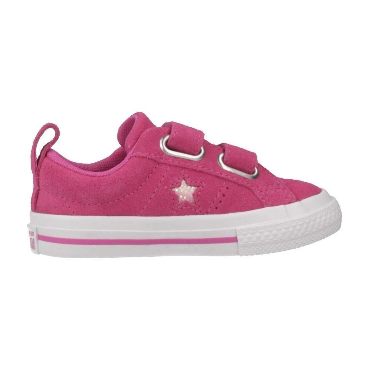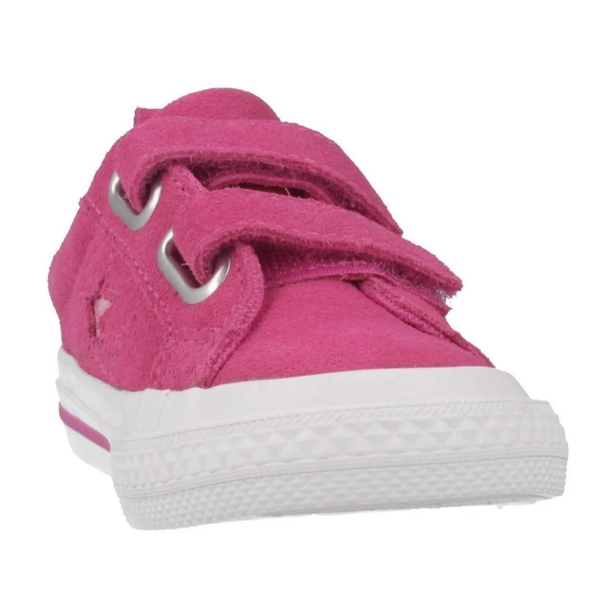 Baskets bébé de la marque Converse modèle One star 2v ox en coloris rose avec fermeture à scratch.