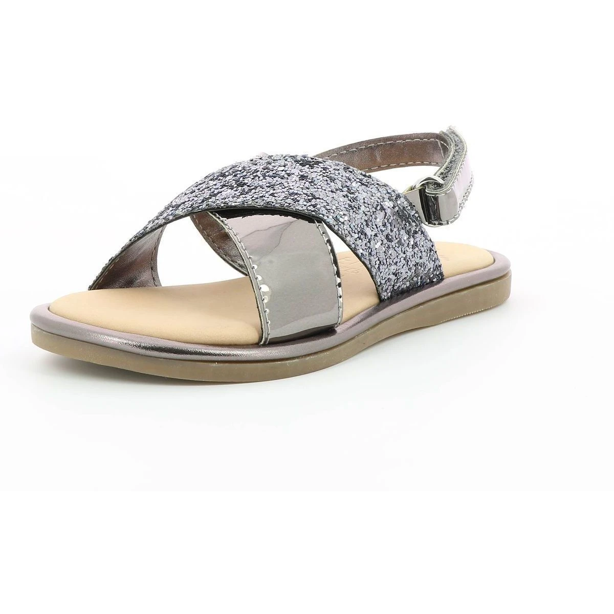 Sandales fille de la marque Mod 8 modèle Pazily en coloris gris argenté. Première en cuir. Fermeture par scratch .