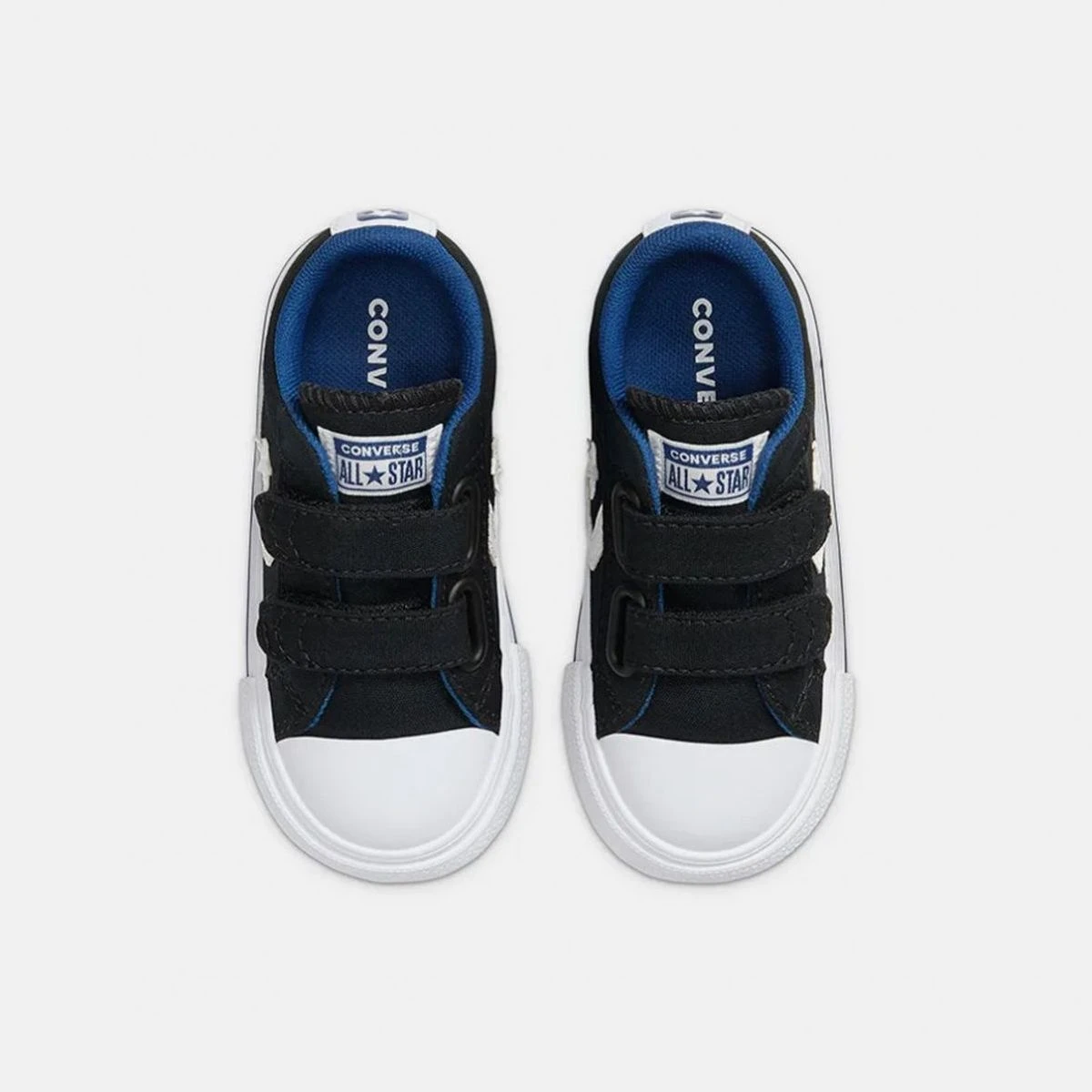 Baskets enfant de marque Converse modèle Star player 2v en coloris 766953c star player 2v – ox / black/rush blue/white en toile avec fermeture à scratch.