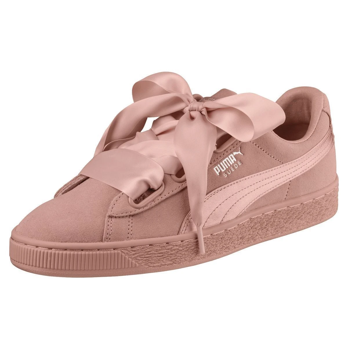 Sneakers femme de la marque Puma modèle Suede Heart EP. Sigle en satin ton sur ton. Dessus cuir suédé, doublure textile. Dur dur de résister à son charme… Deux lacets fournis : Lacets en ruban ( satin) et lacets larges tissés. Semelle en caoutchouc. Coloris : rose ( pech beige/metallic beige).