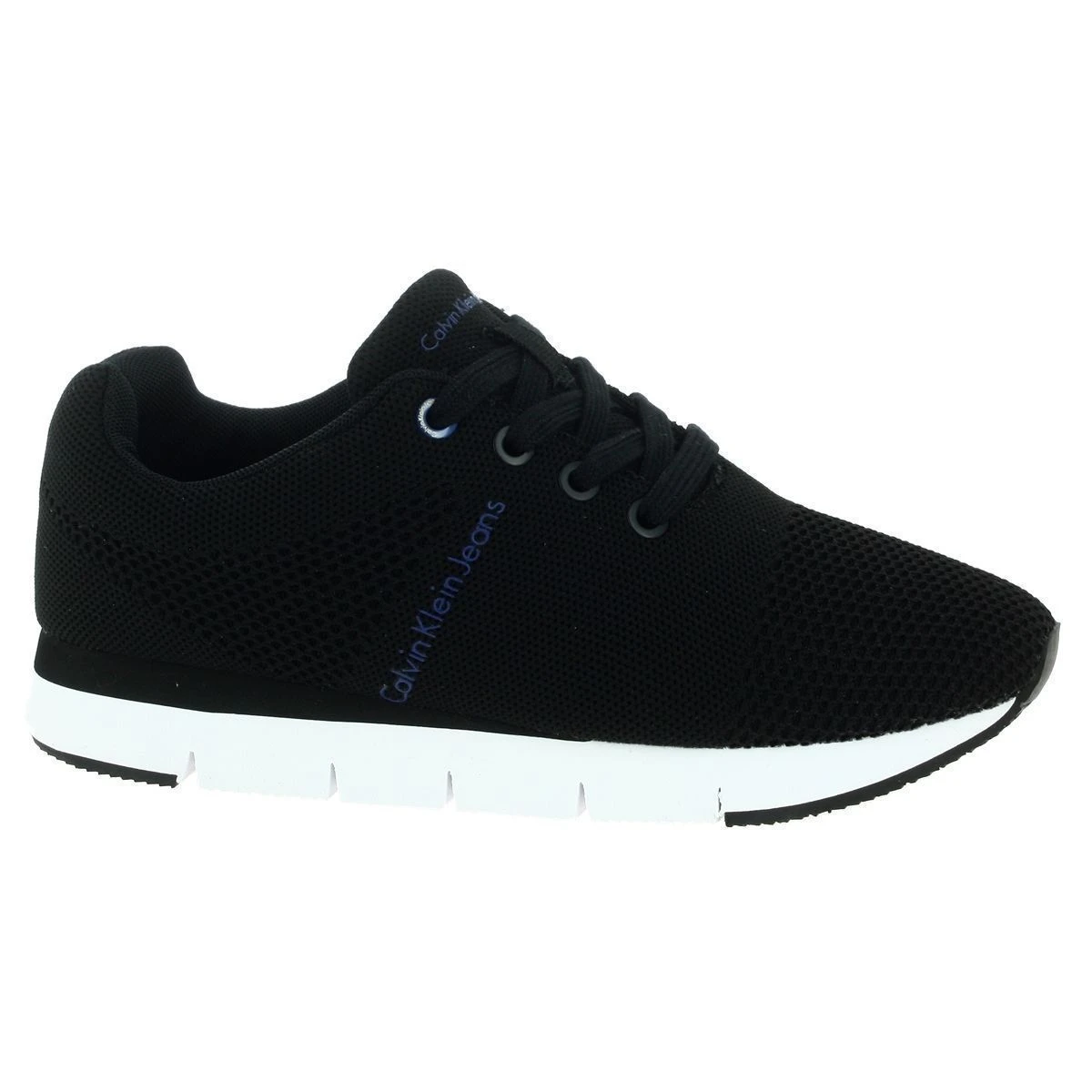 Baskets mode Calvin Klein Jeans pour femme modèle Tada . Fermeture à lacets. Dessus textile mesh, doublure et première textile. Semelle intérieure amovible. Semelle extérieure contrastante blanche. Coloris : noir .