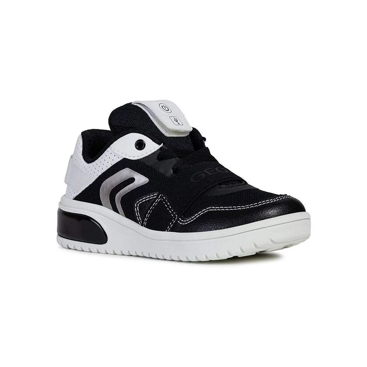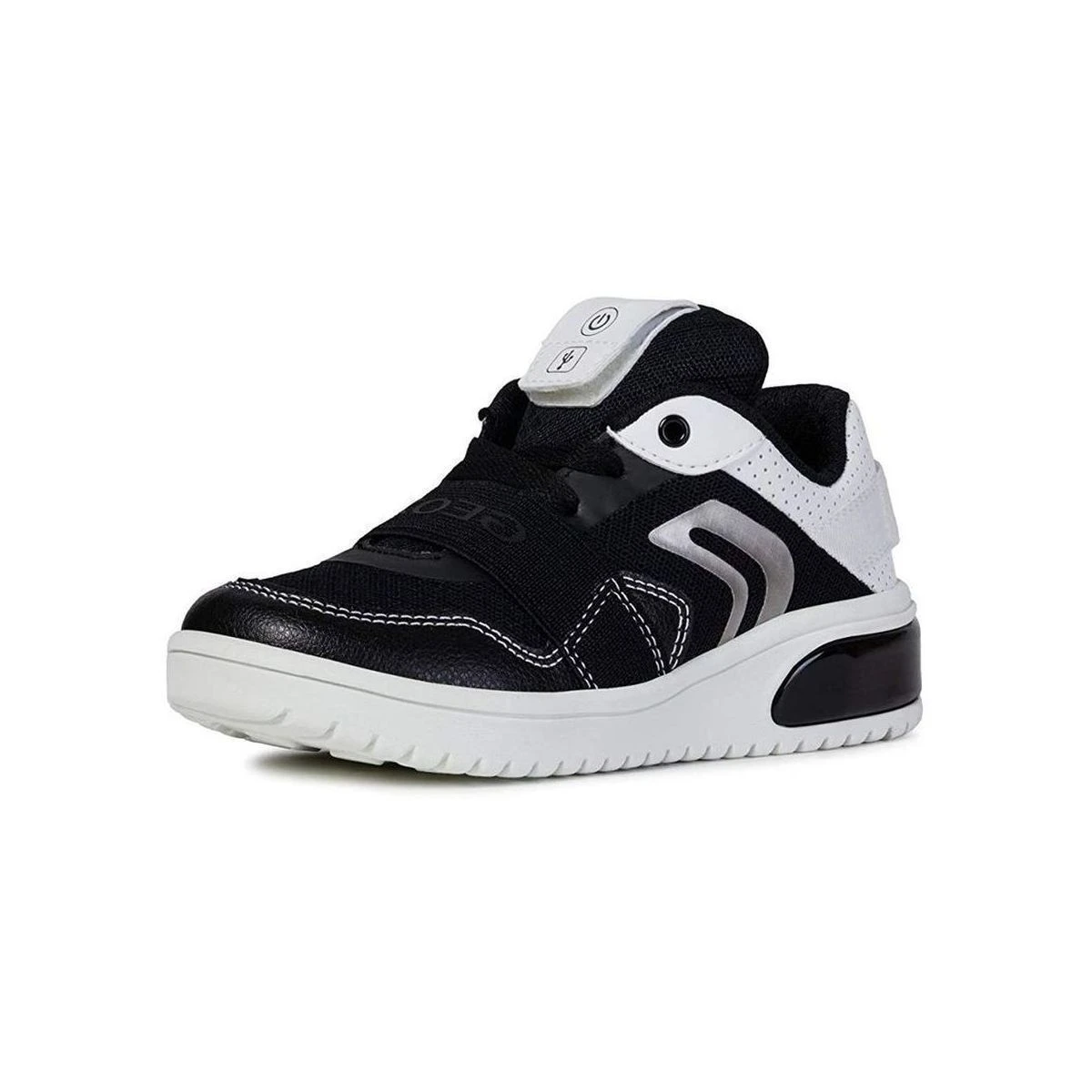 Baskets montantes enfant de marque Geox modèle X led en coloris noir. Elle conjugue confort et silhouette tendance.La J Xled Boy est montĂ©e sur une semelle en caoutchouc Ă©quipĂ©e d’un LED, avec posibilitĂ© d’ecrire des mots depuis son smartphone. Ce sont les baskets des gĂ©nĂ©rartions futuristes .