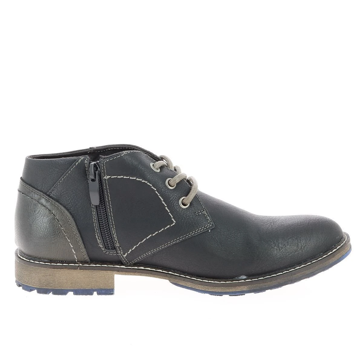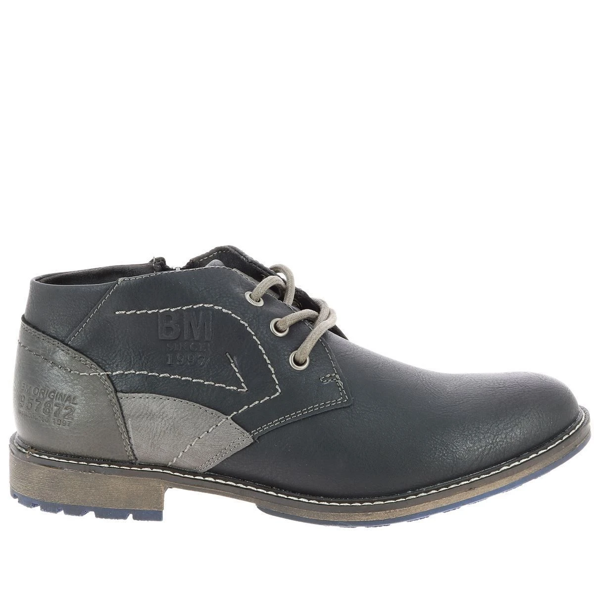Bottines homme BM Footwear en simili cuir d’excellente qualité. A la fois classiques et confortables, ces boots s’associeront à toutes vos tenues.Elles se ferment par zip et s’ajustent grâce aux lacets.Surcoutures contrastantes. Bout rond. Doublure textile. Semelle extérieure antidérapante.Coloris : noir.