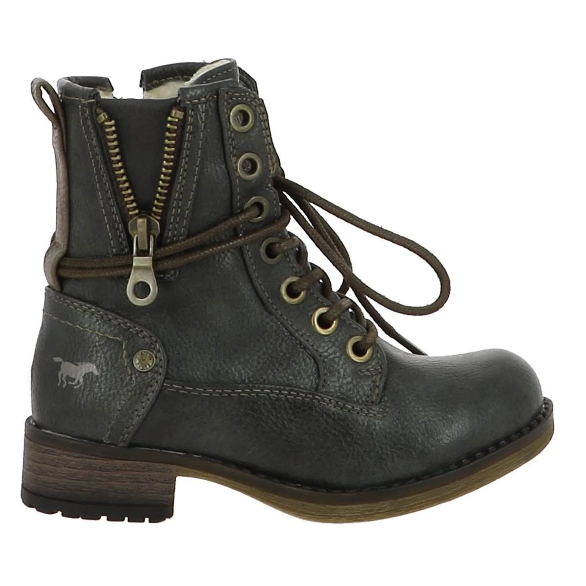 Bottines fille de la marque Mustang modèle 5026-619. Bottines fourrées.Fermeture pratique par zip.Coloris : bleu graphite.