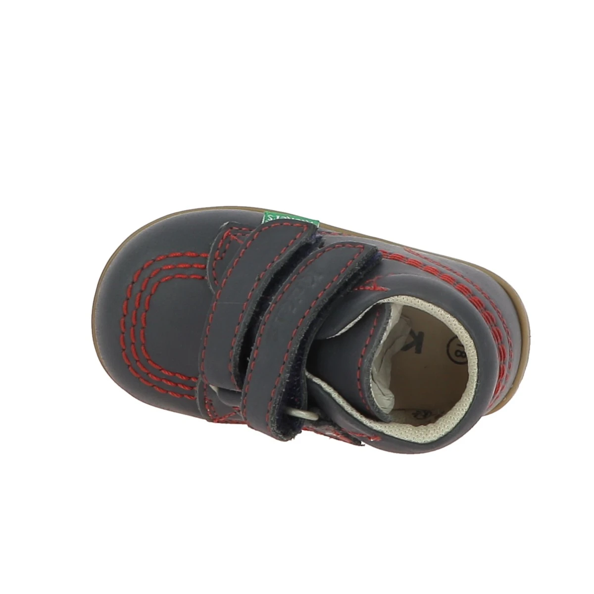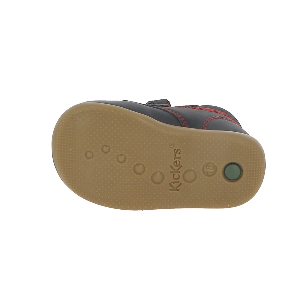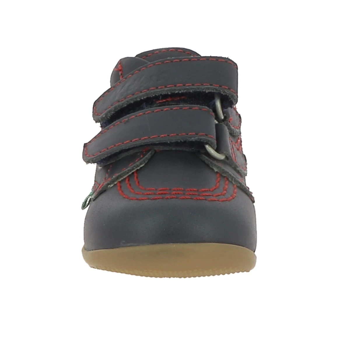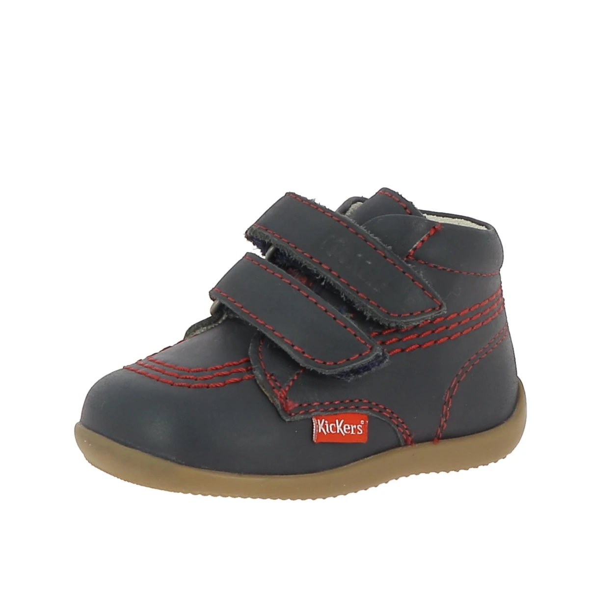 Bottillon bĂ©bĂ© en cuir de la marque Kickers modèle Bikro-2.Ces chaussures montantes se ferment Ă l’aide de deux brides Ă scratchs pour un enfilage facile.Tige en cuir. Doublure en textile et semelle de propretĂ© en cuir. SurpiqĂ»res visibles. Semelle extĂ©rieure antidĂ©rapante en gomme .