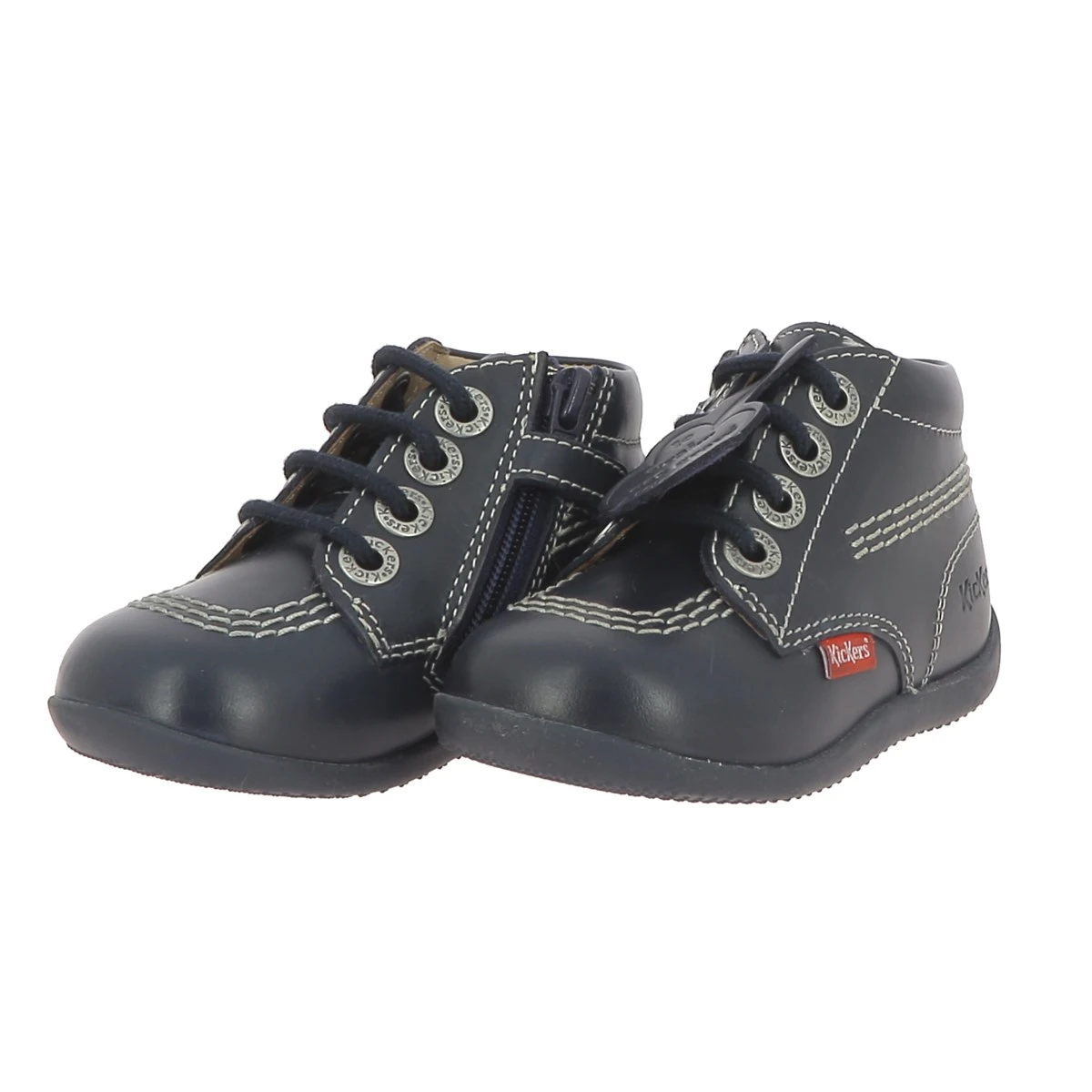 Chaussures montantes pour bébé de la marque Kickers modèle Billyzip-2. Tige en cuir lisse, Doublure cuir. Semelle flexible et confortable. Fermeture par lacet + zip. Semelle extérieure antidérapante en gomme.
