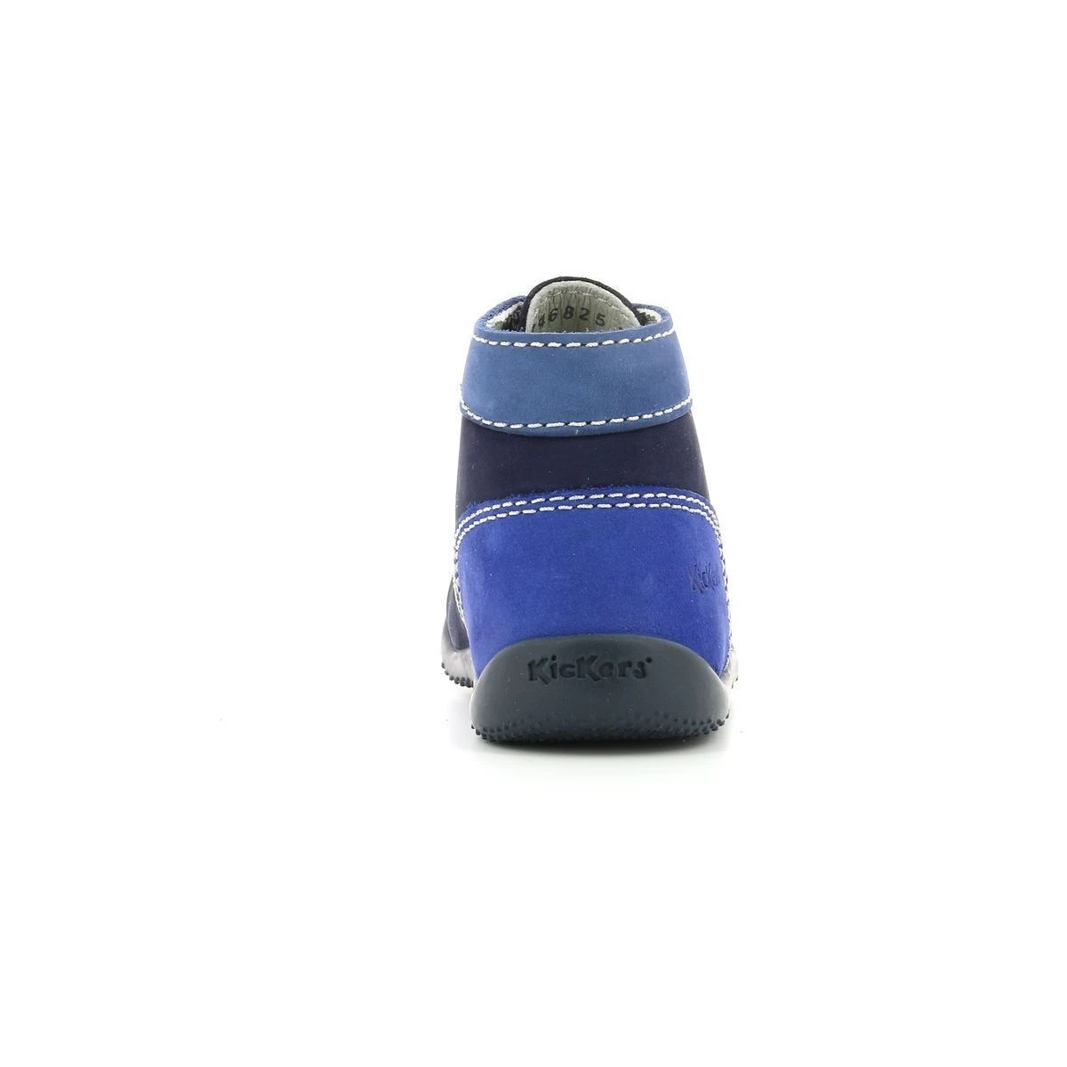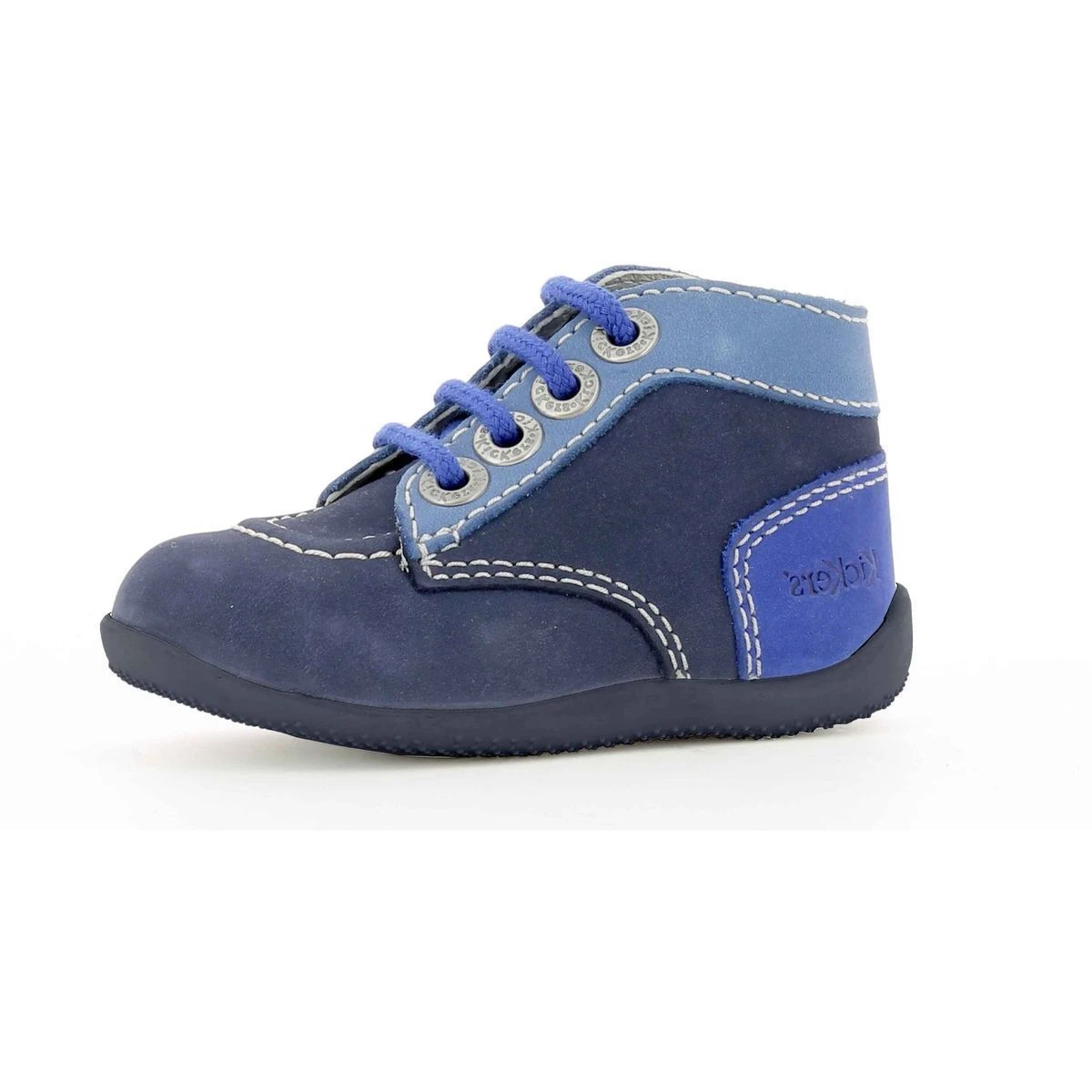 Bottines bébé tricolore modèle Bonbon de la marque Kickers.Dessus, doublure et première cuir.Fermeture à lacets. Surpiqûres visibles. Semelle flexible.Semelle caoutchouc. Coloris : Marine bleu.