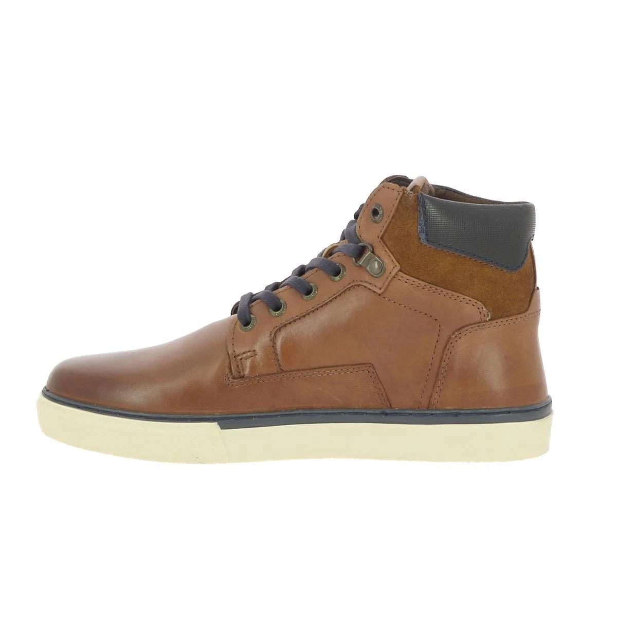 Sneakers montantes homme de la marque Redskins modèle Charbon.Semelle de 2 cm.Sneakers en cuir avec semelle blanc cassé.