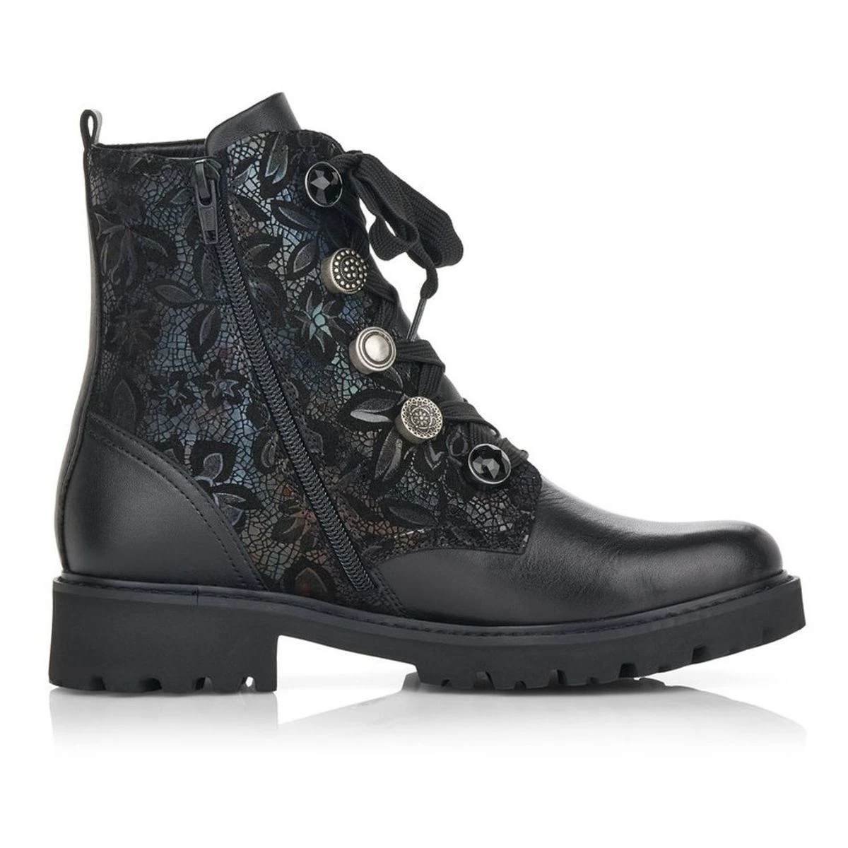 Bottines mode femme de la marque Remonte modèle D8677. Fermeture a zip ou à lacets.Plus de largeur pour un excellent chaussant.Semelle amovible.Voute plantaire pour amortir les chocs.Semelle légère et souple