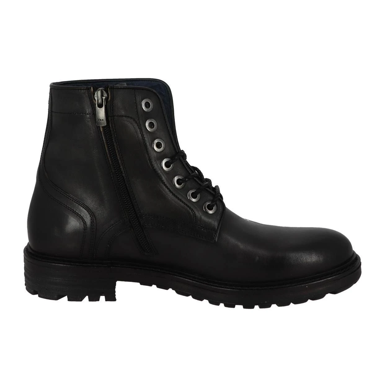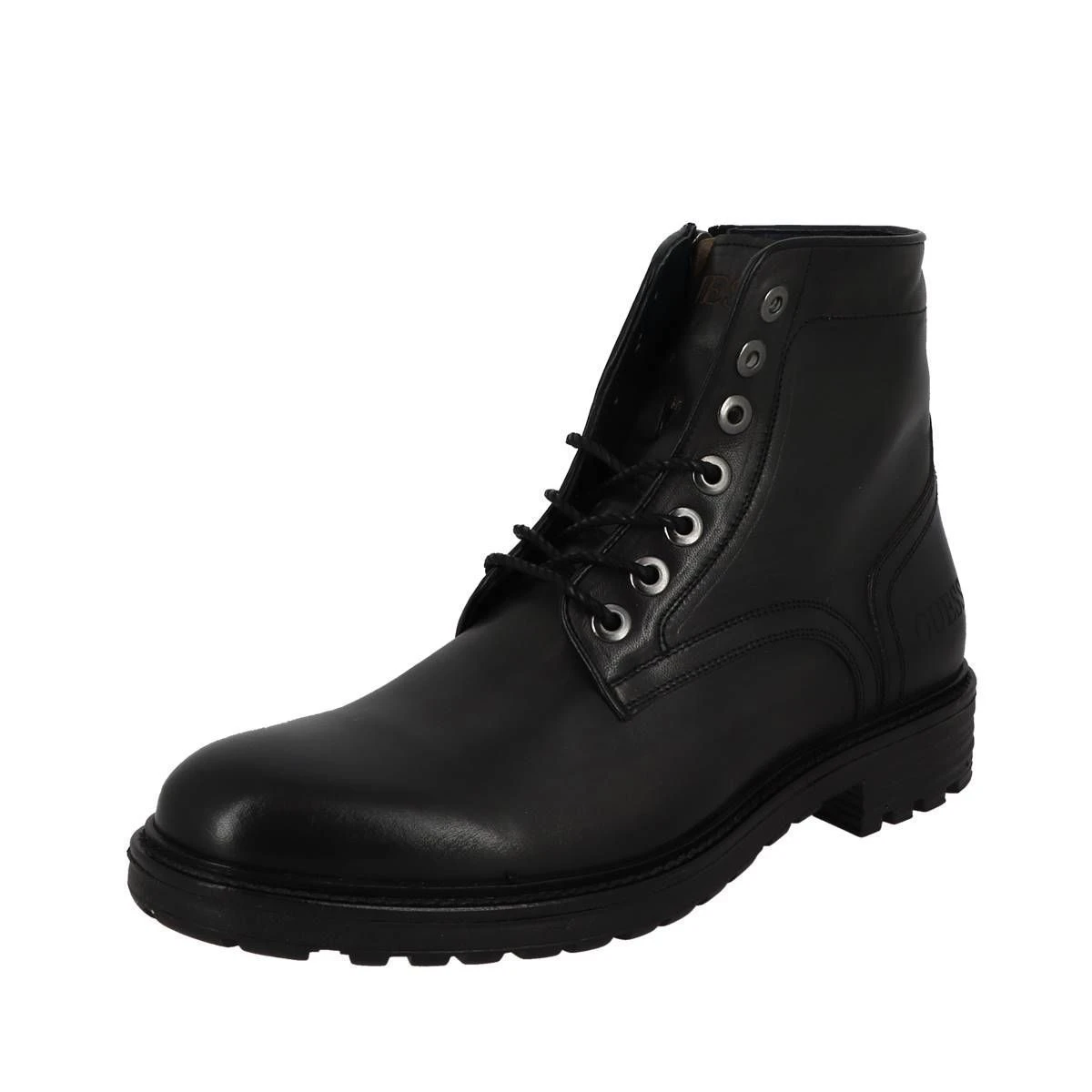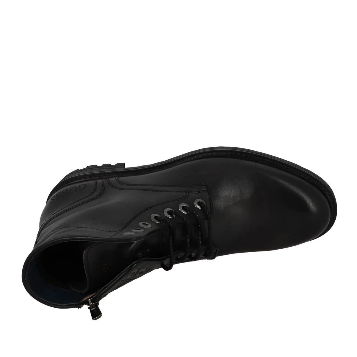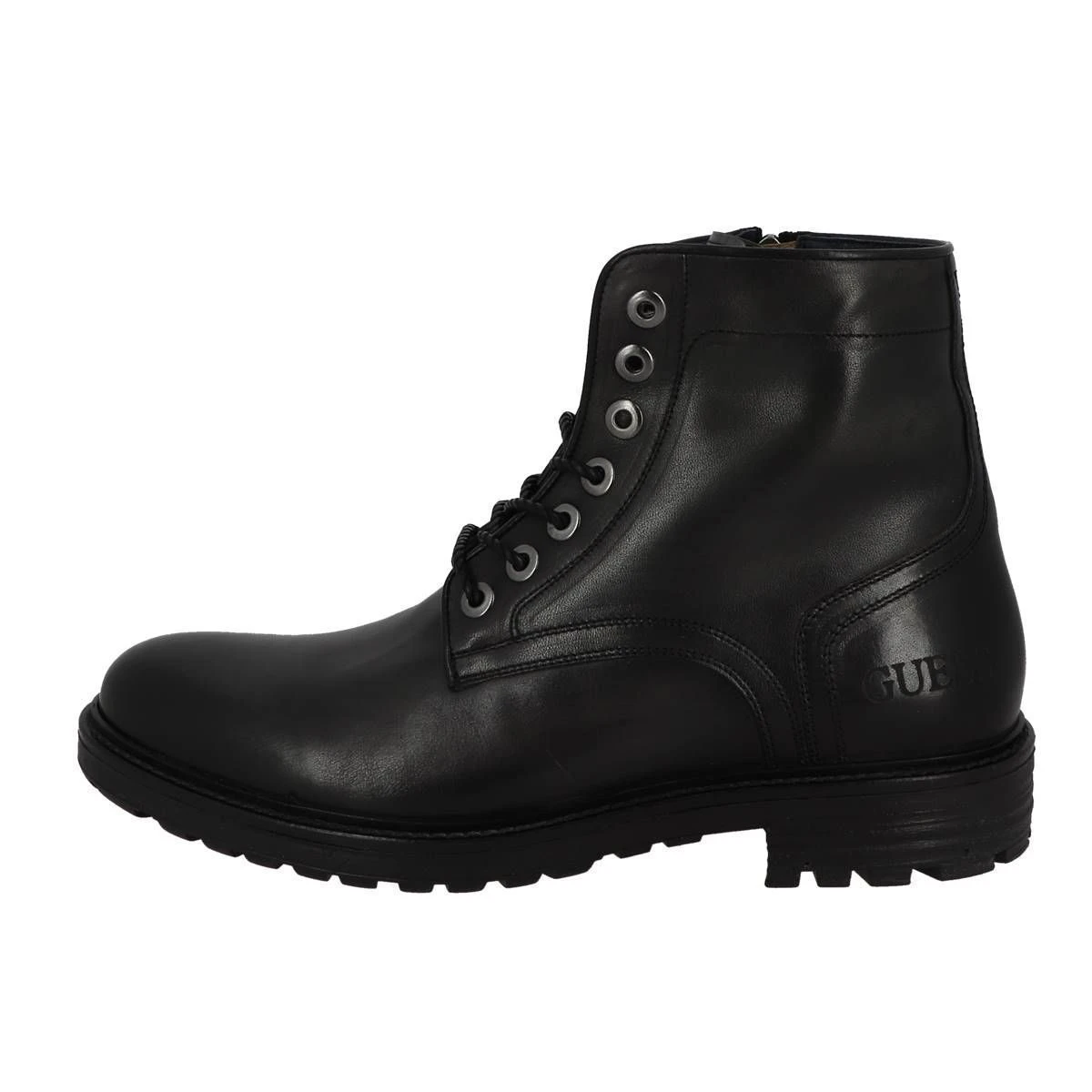 Bottines en cuir lisse noir tons ombrés pour homme de la marque Guess.Fermeture à lacets+ zip latéral.Dessus cuir. Doublure textile. Semelle intérieure cuir. Talon de 3 cm. Logo Guess gravé.Les découpes de cette boot aux coutures discrètes apportent une touche raffinée.Optez pour ces boots élégantes en cuir pour un look décontracté chic !Coloris :