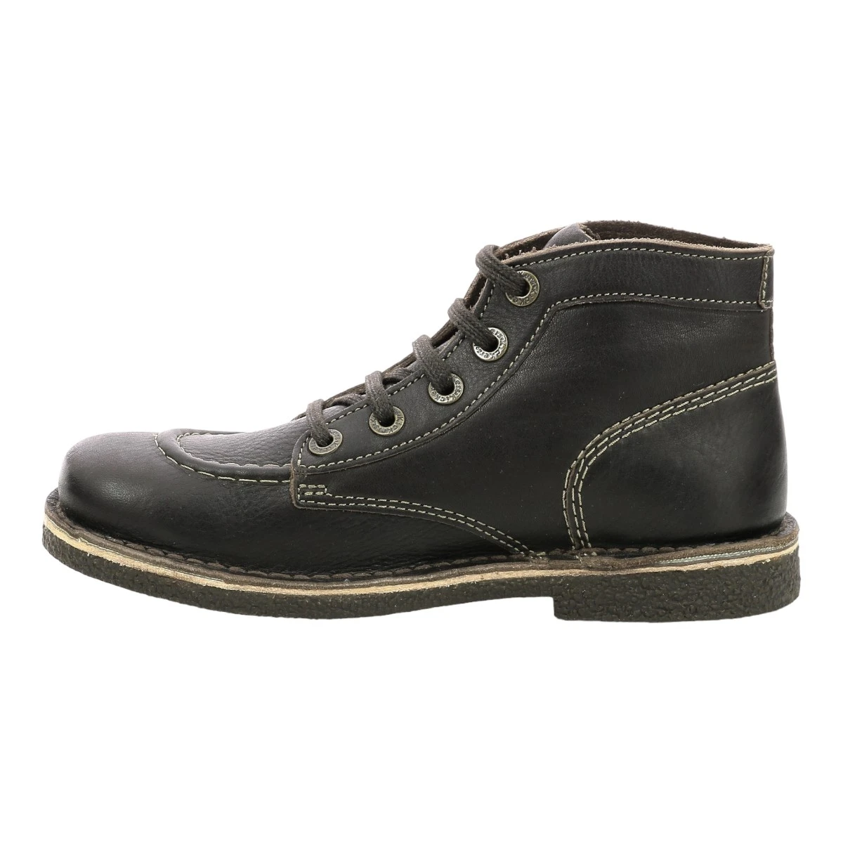 Tige en cuir, doublure et première cuir. Surpiqûres contrastantes. Bout rond.