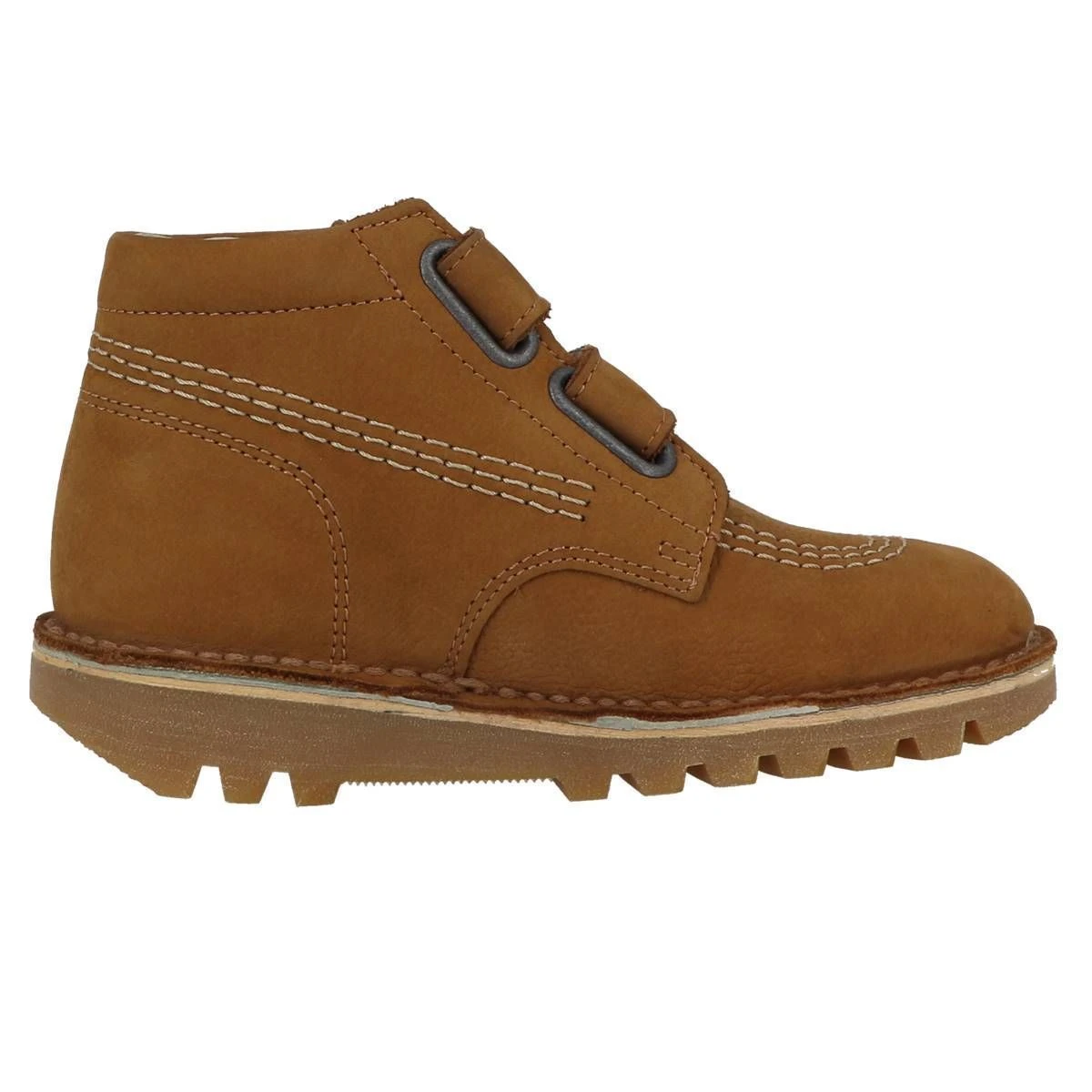 Bottillon enfant Neovelcro de la marque Kickers. Fermeture par scratchs. Tige en cuir. Doublure et première en cuir. Semelle extérieure crantée en caoutchouc. Coloris : camel.