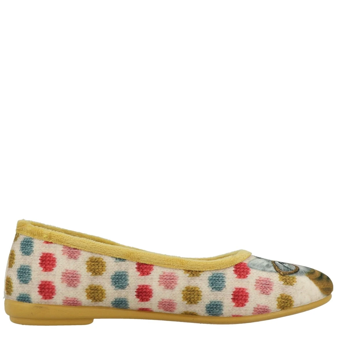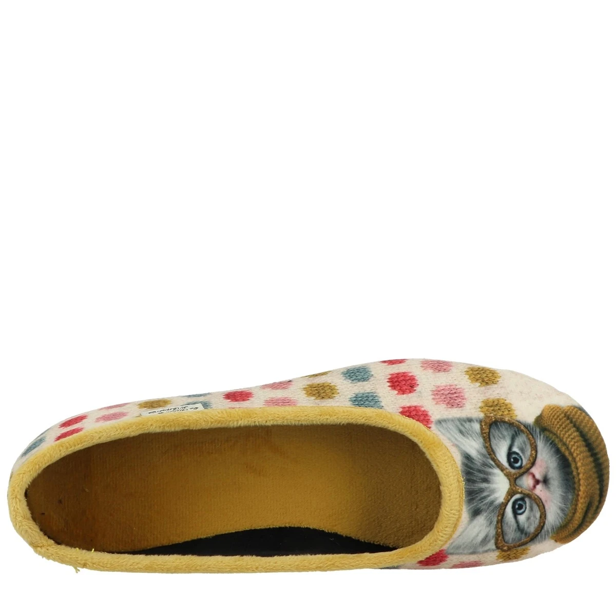 Imprimé pois multicolores et chaton.
