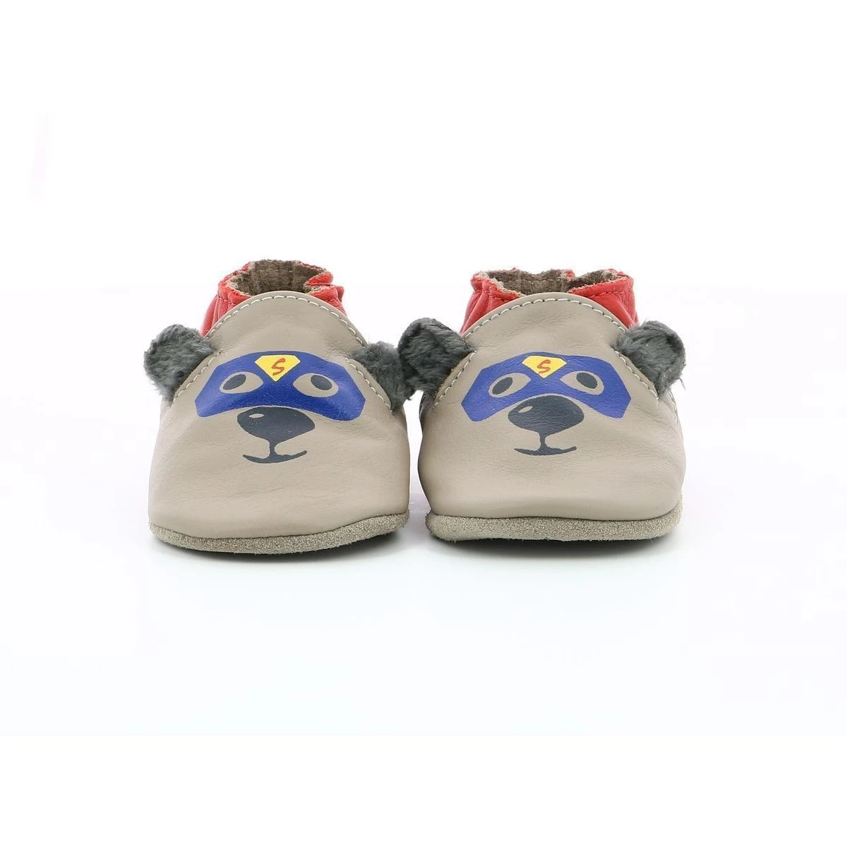 Chaussons bébé de la marque Robeez en cuir modèle Awesome bear.Ces cuirs dont le tannage végétal est élaboré à partir d’écorces de fruits, de feuilles d’acacia et de mimosas.