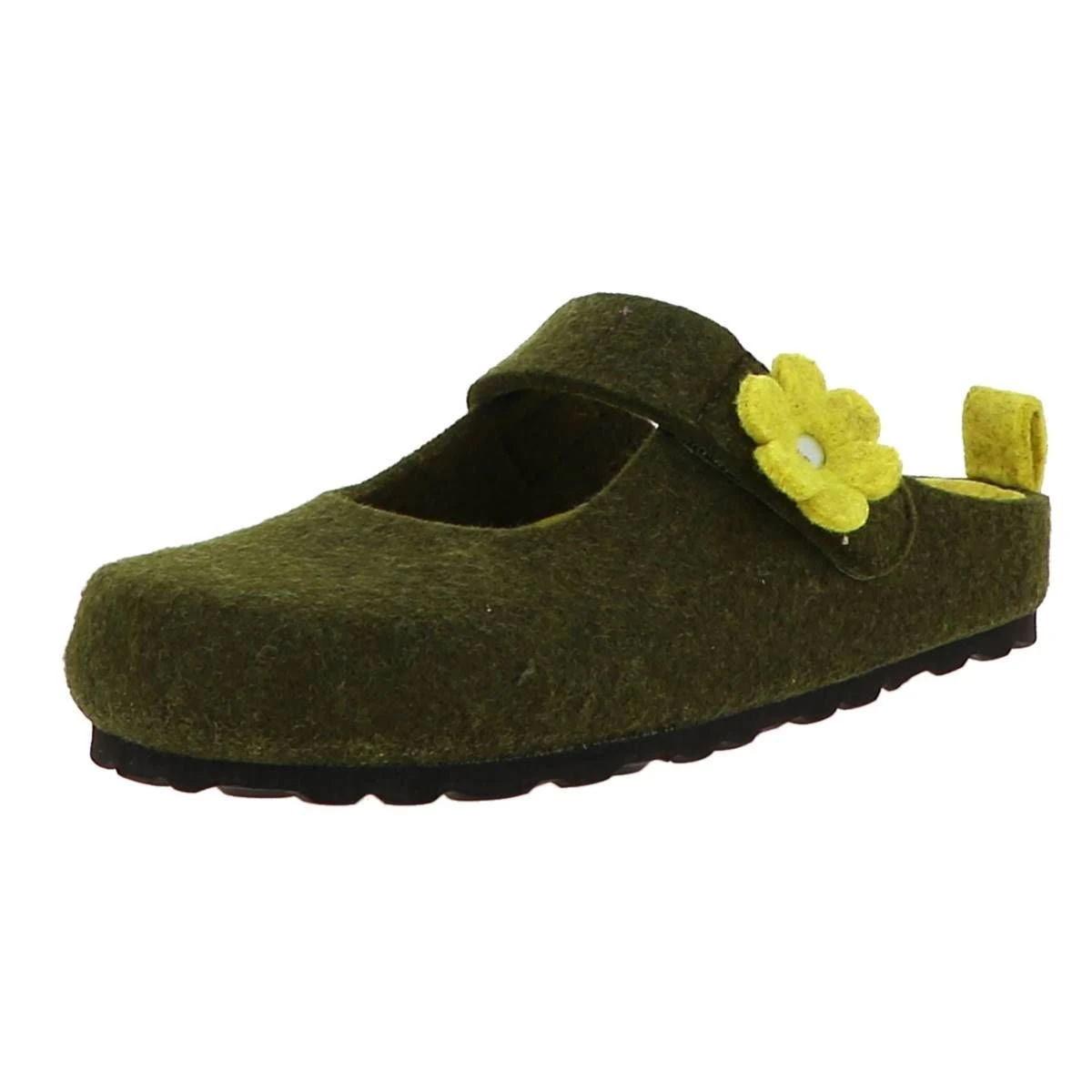 Chausson en feutre de laine femme vert avec application fleur