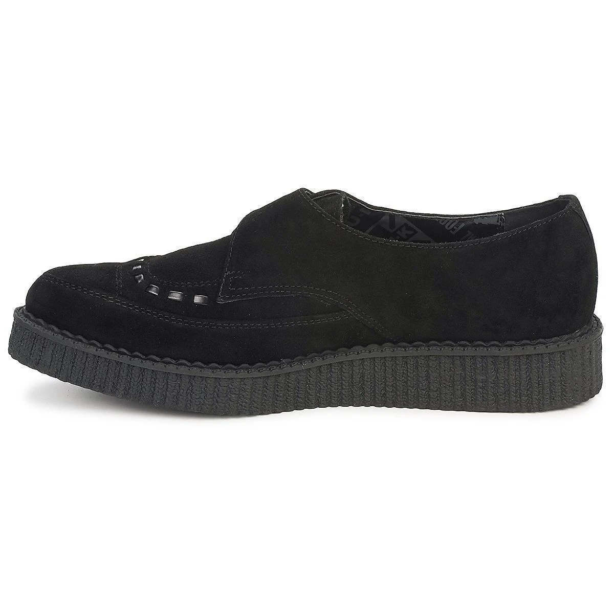 Chaussures à bride des années 50’s avec la montée de courants musicaux tels que le Rockabilly, les Creepers sont aujourd’hui une institution auprès des punk rockeurs ! Leur originalité ? Une semelle épaisse, ici revisitée par TUK.