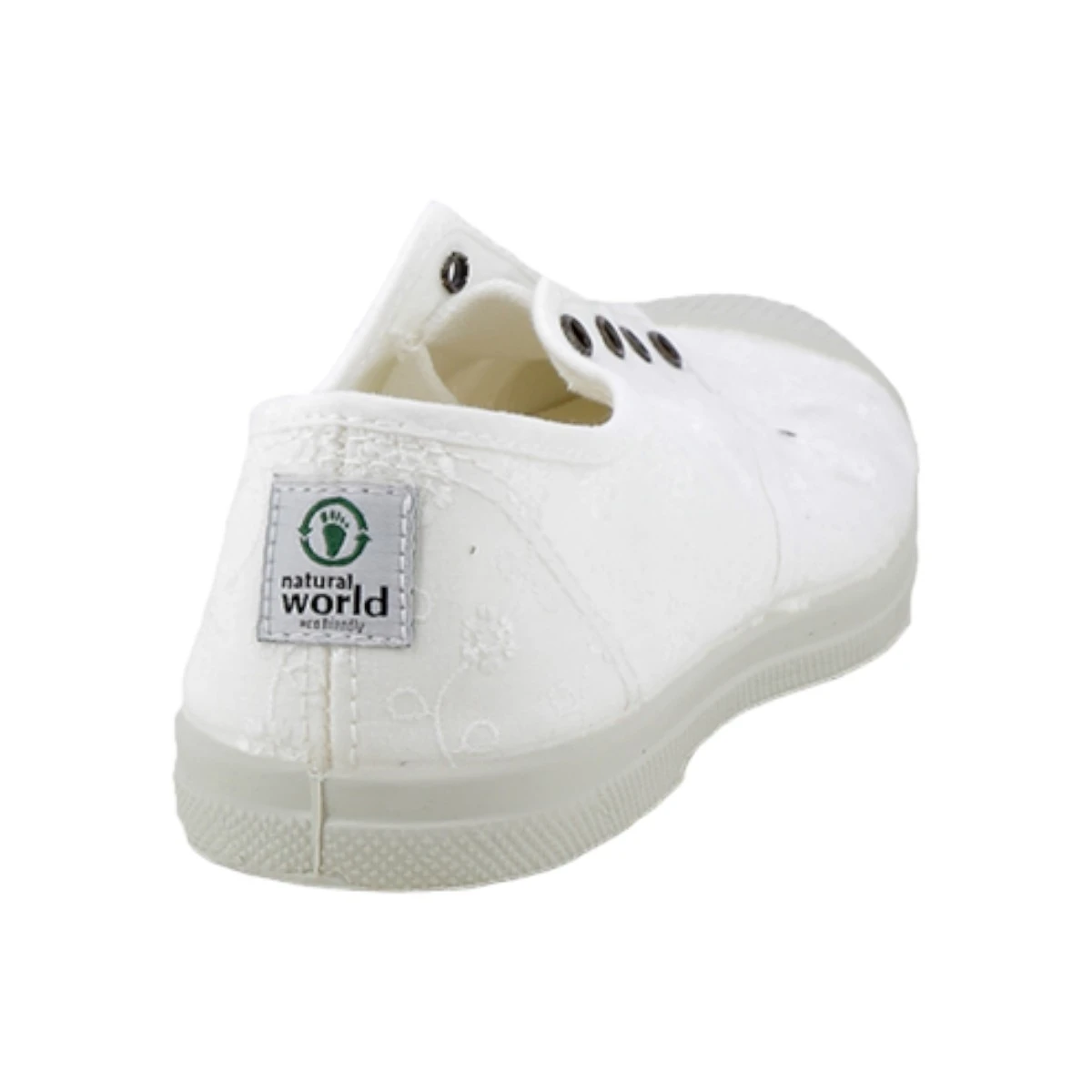 Baskets en toile blanche Natural World fabriquées à partir de matières 100% écologiques.