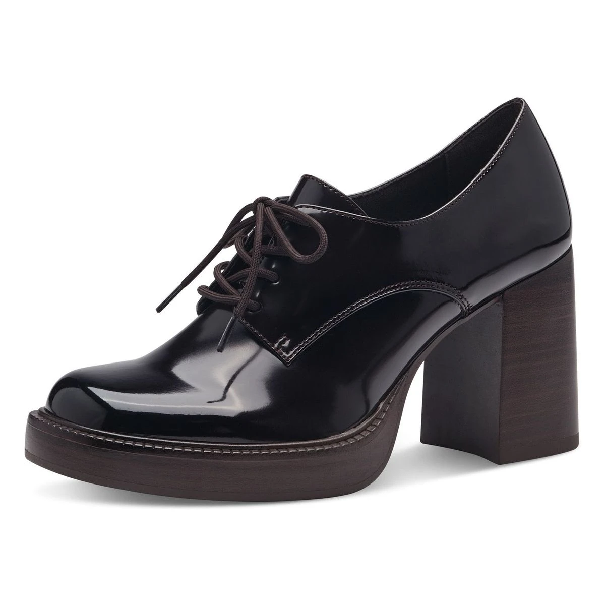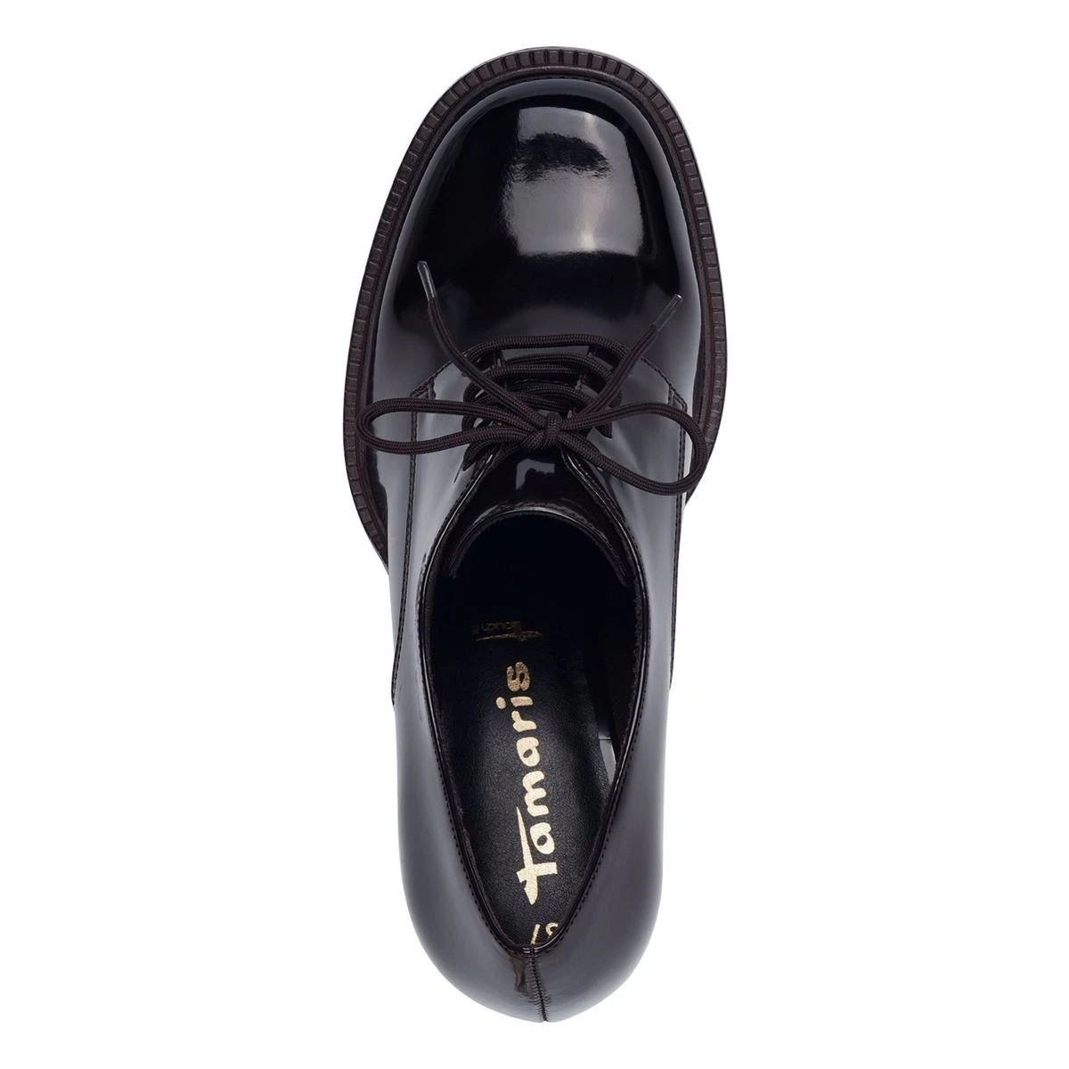 Chaussures à lacets Tamaris en simili cuir glacé mocca foncé.