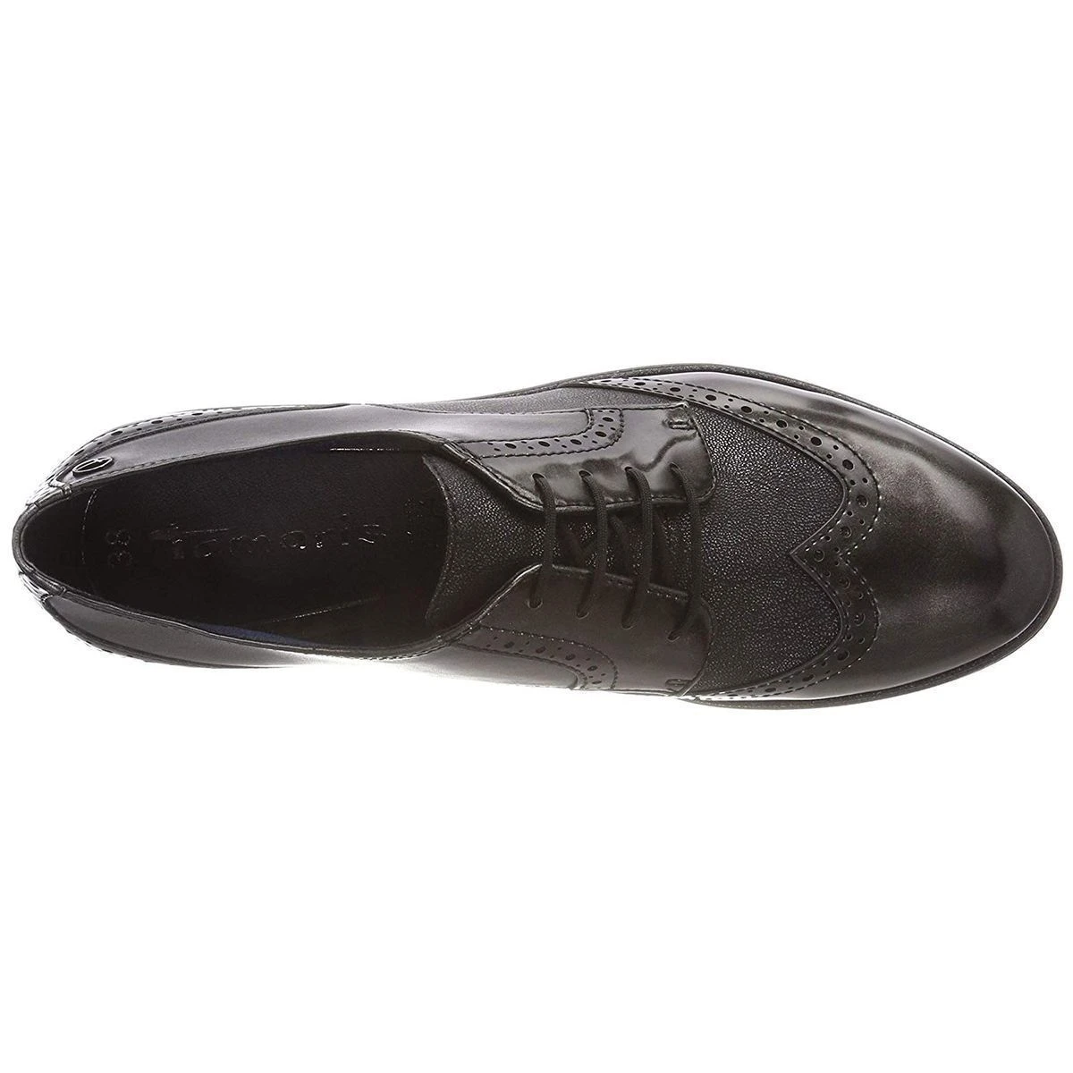 Derby pour femme de la marque Tamaris modèle 23711. Tige en simili cuir multi matières, doublure microfibre. Semelle intérieure en cuir. Technologie touch it qui s’adapte à la forme du pied pour un confort optimal. Semelle ultra légère en synthétique. Talon : 2 cm.