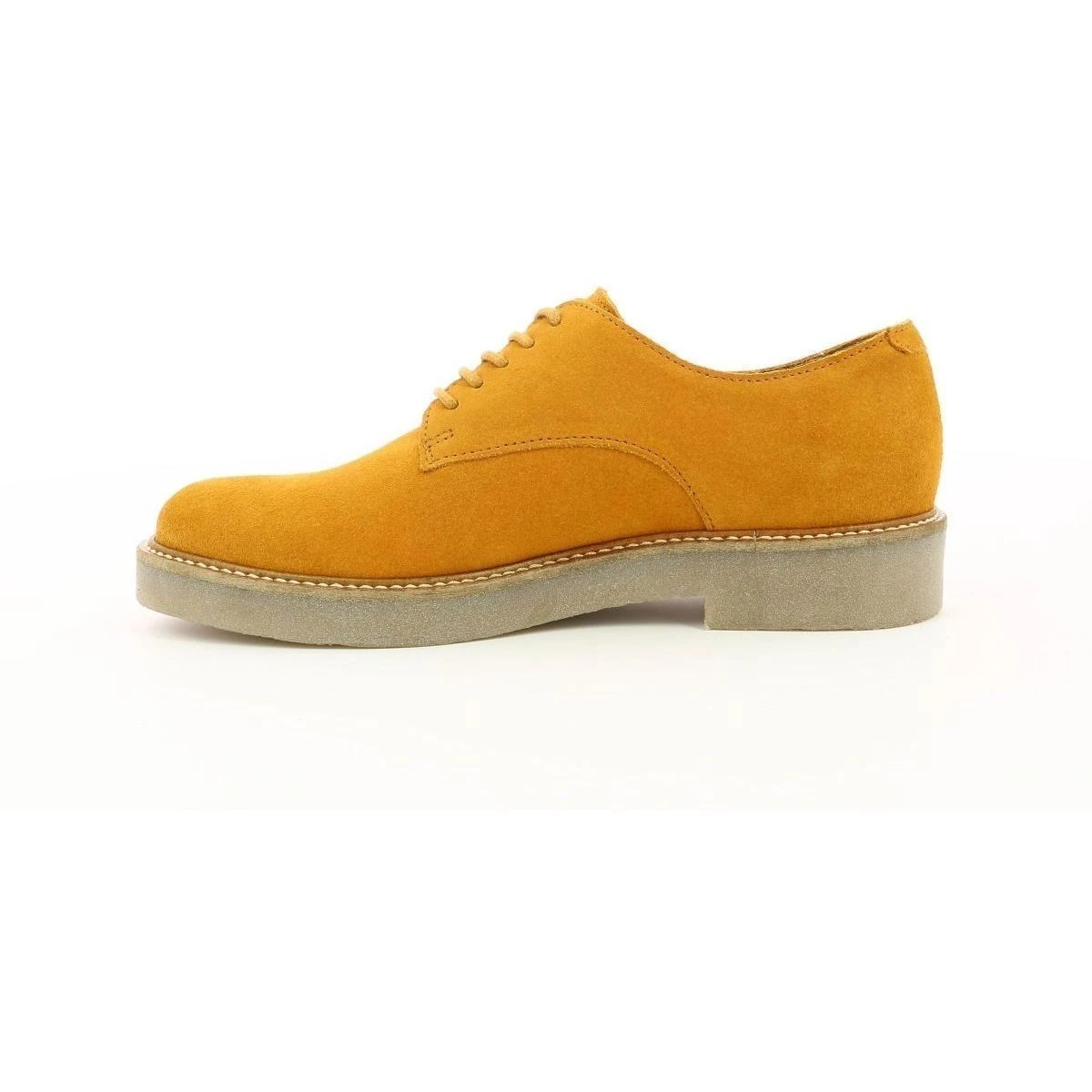 Chaussures à lacets femme de la marque Kickers modèle Oxfork.Tige en cuir nubuck. Doublure et première cuir.Coloris : jaune ocre.
