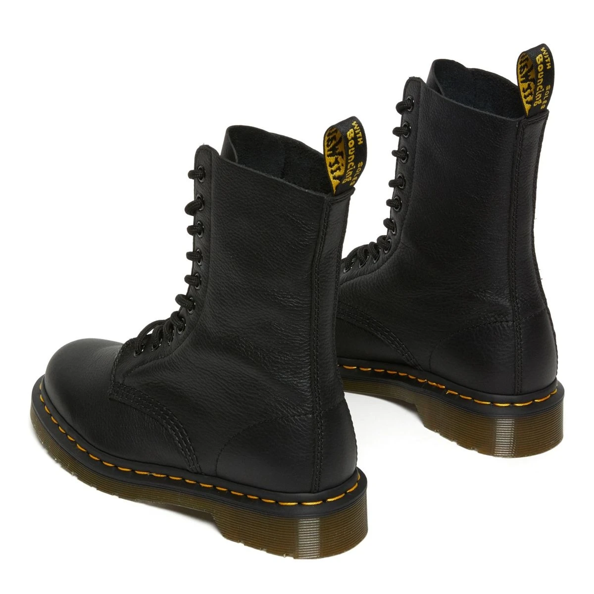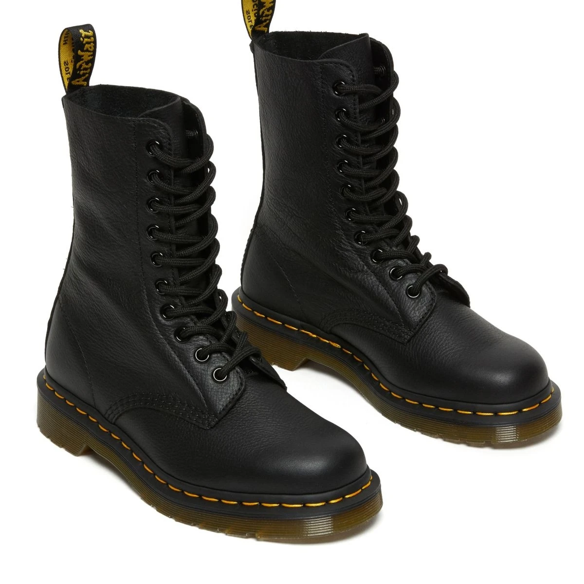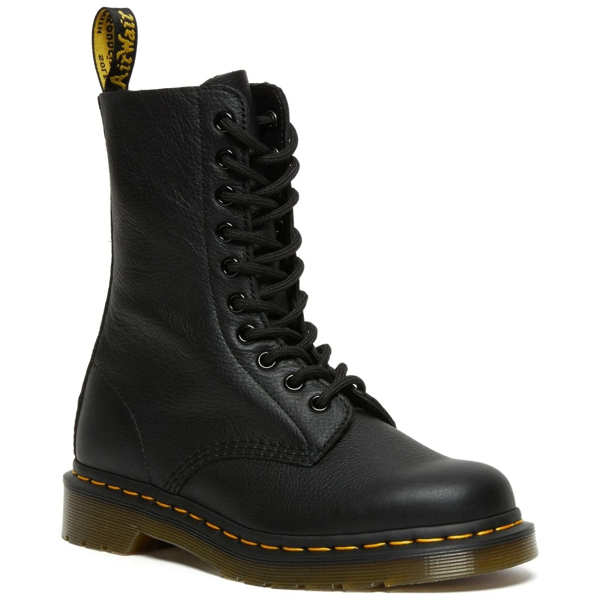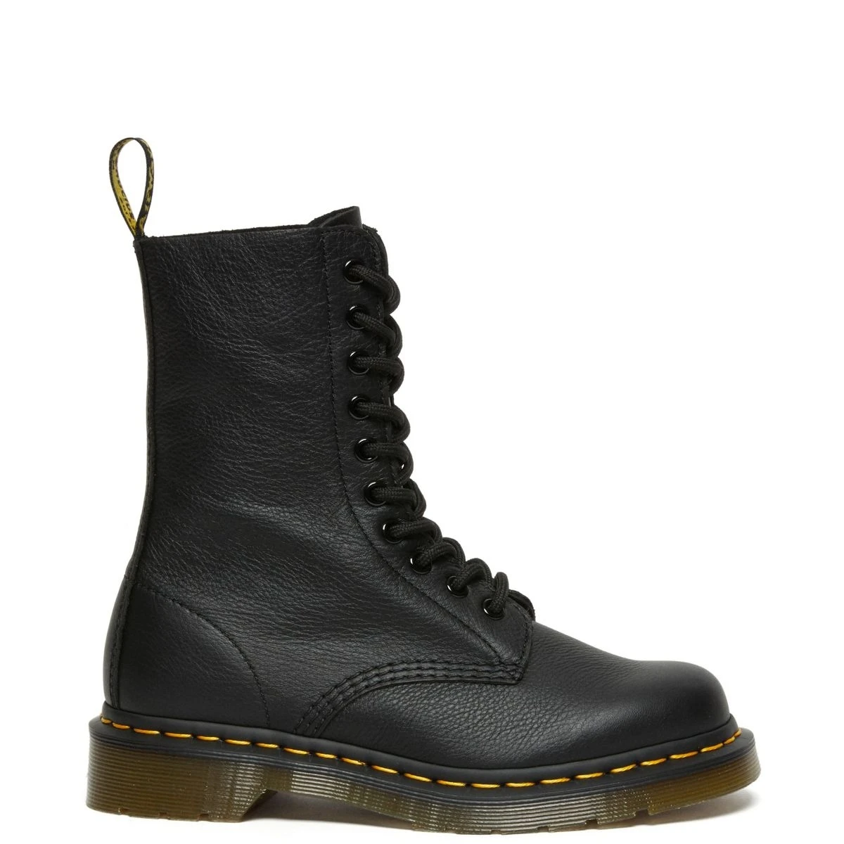 Bottines Ă lacets Dr Martens pour femme Ă 10 eillets. On retrouve l’ADN des Docs dans ces bottes Dr Martens 1490 : rainures sur les cĂ´tĂ©s, surpiqĂ»re visible et tirette au talon !