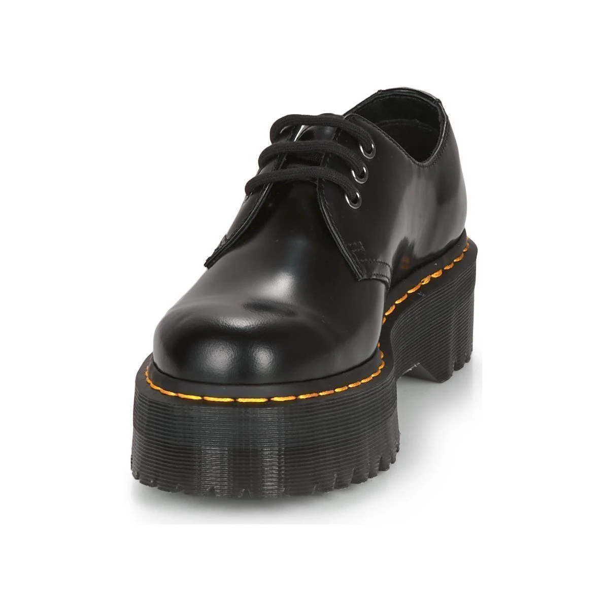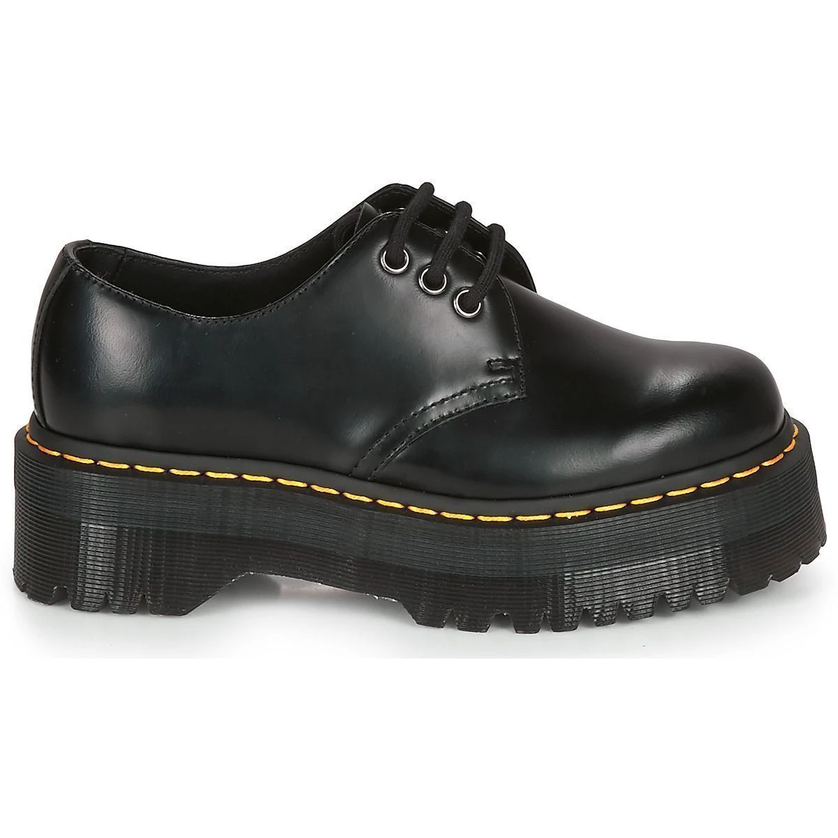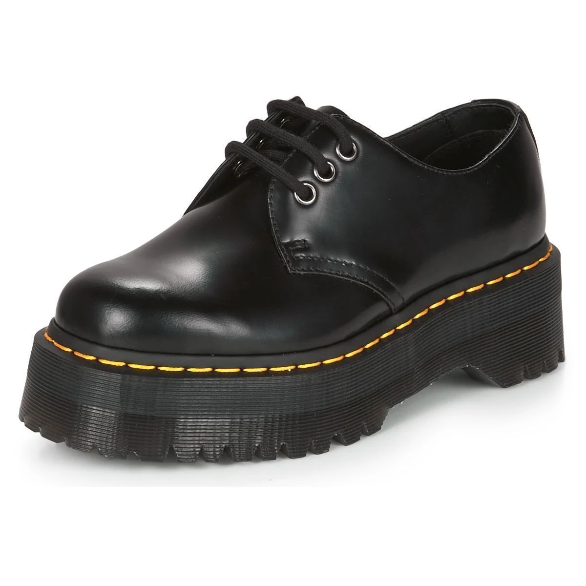 Dr Martens revisite ses classiques, qui prennent de la hauteur, Ă travers ces derbies plateforme 1461 Quad Polished Smooth !