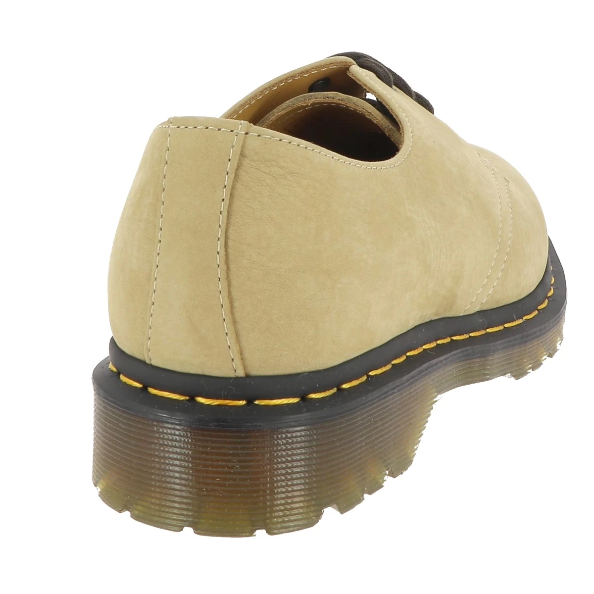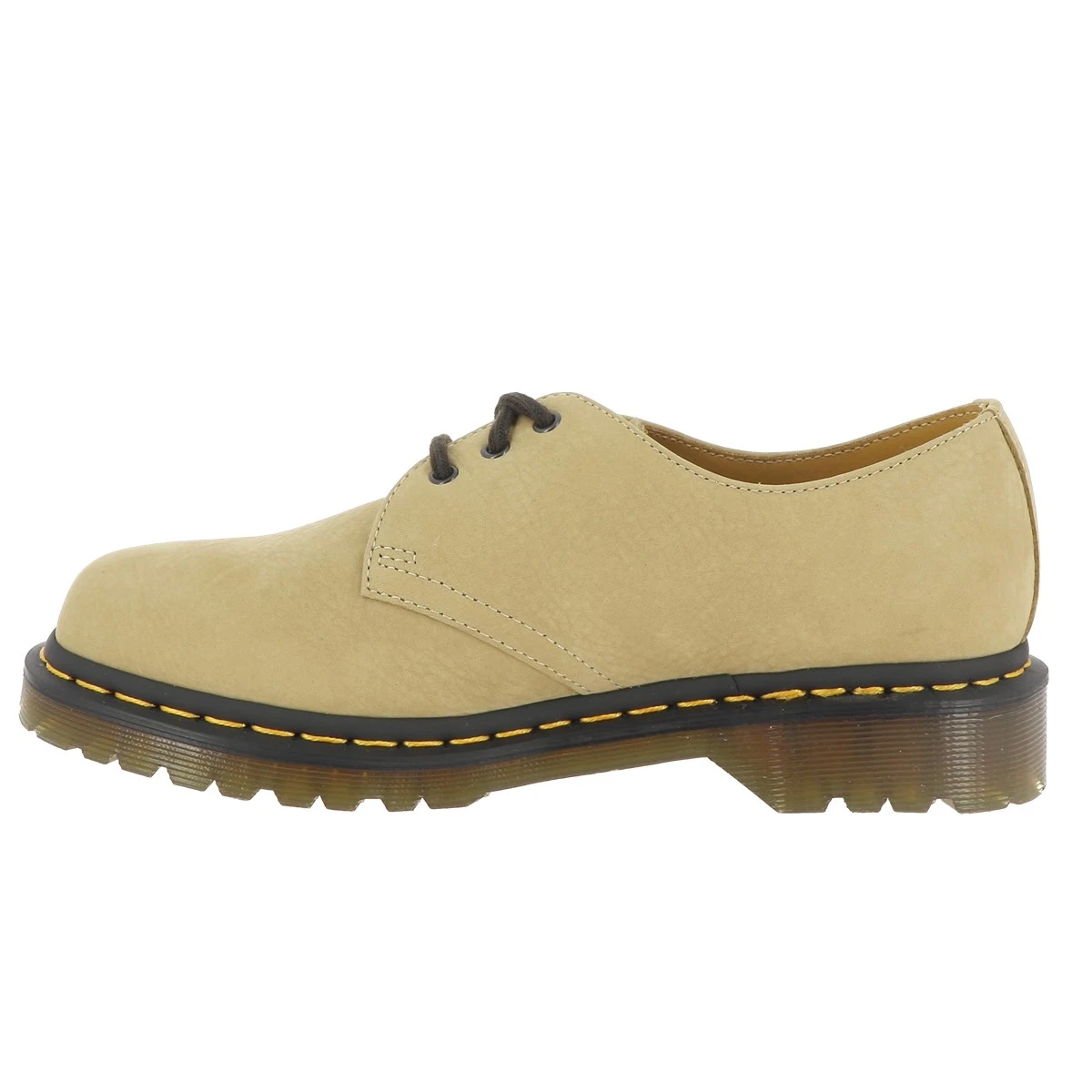 Chaussures Dr Martens 1461 en cuir nubuck beige.Tige en cuir ( milled nubuck) avec effet vieilli.Elles sont montées sur une semelle crantée robuste, et bénéficient d’un montage Goodyear renforcé par la surpiqûre jaune signature Dr Martens.Doublure: 60% Cuir 40% Textile..