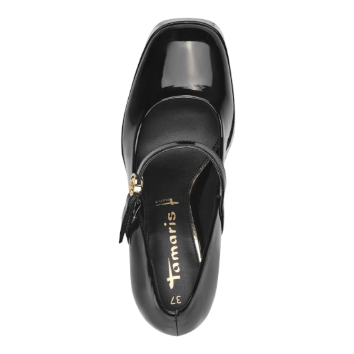 Chaussures Tamaris pour femme type » babies » en simili cuir noir.