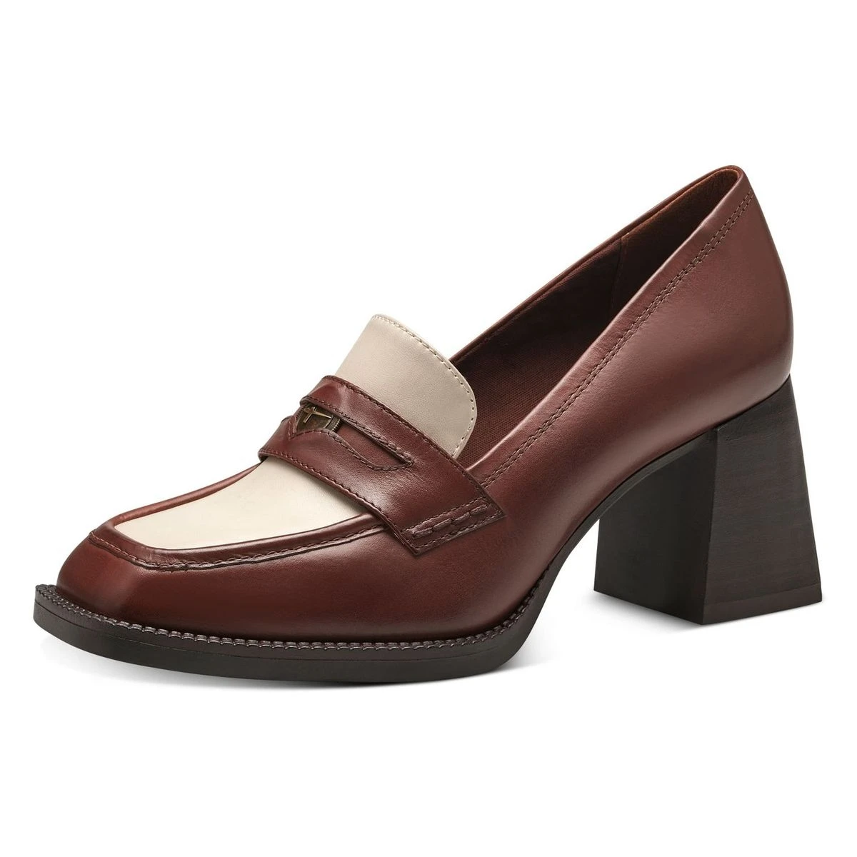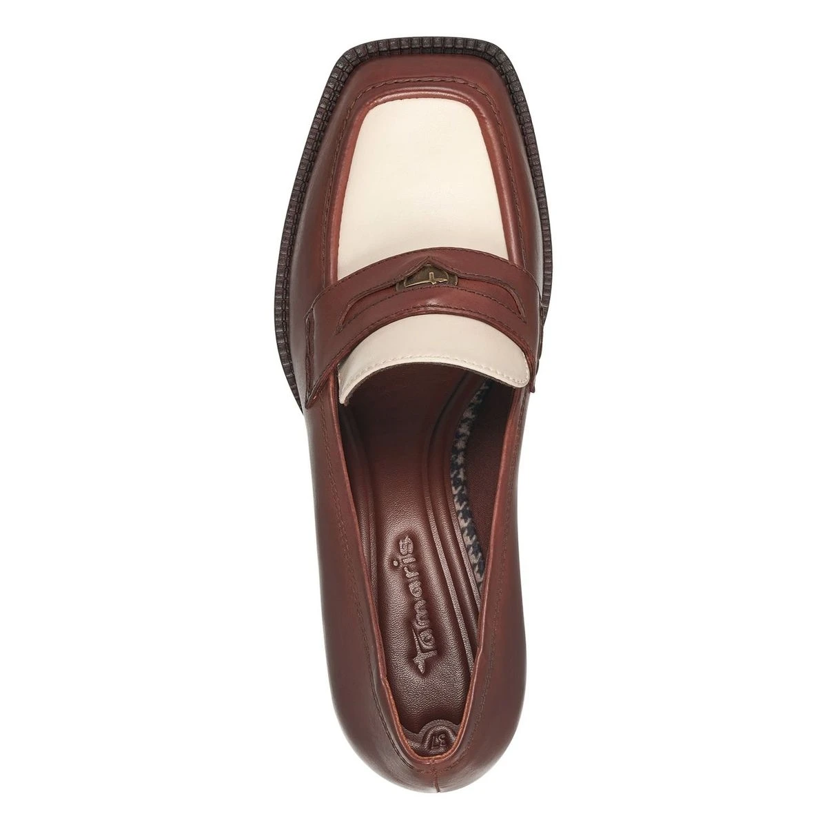 Mocassin à talon bicolore Tamaris cognac comb 24429-41