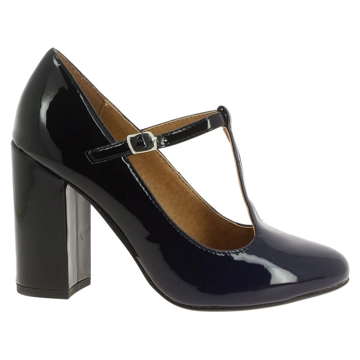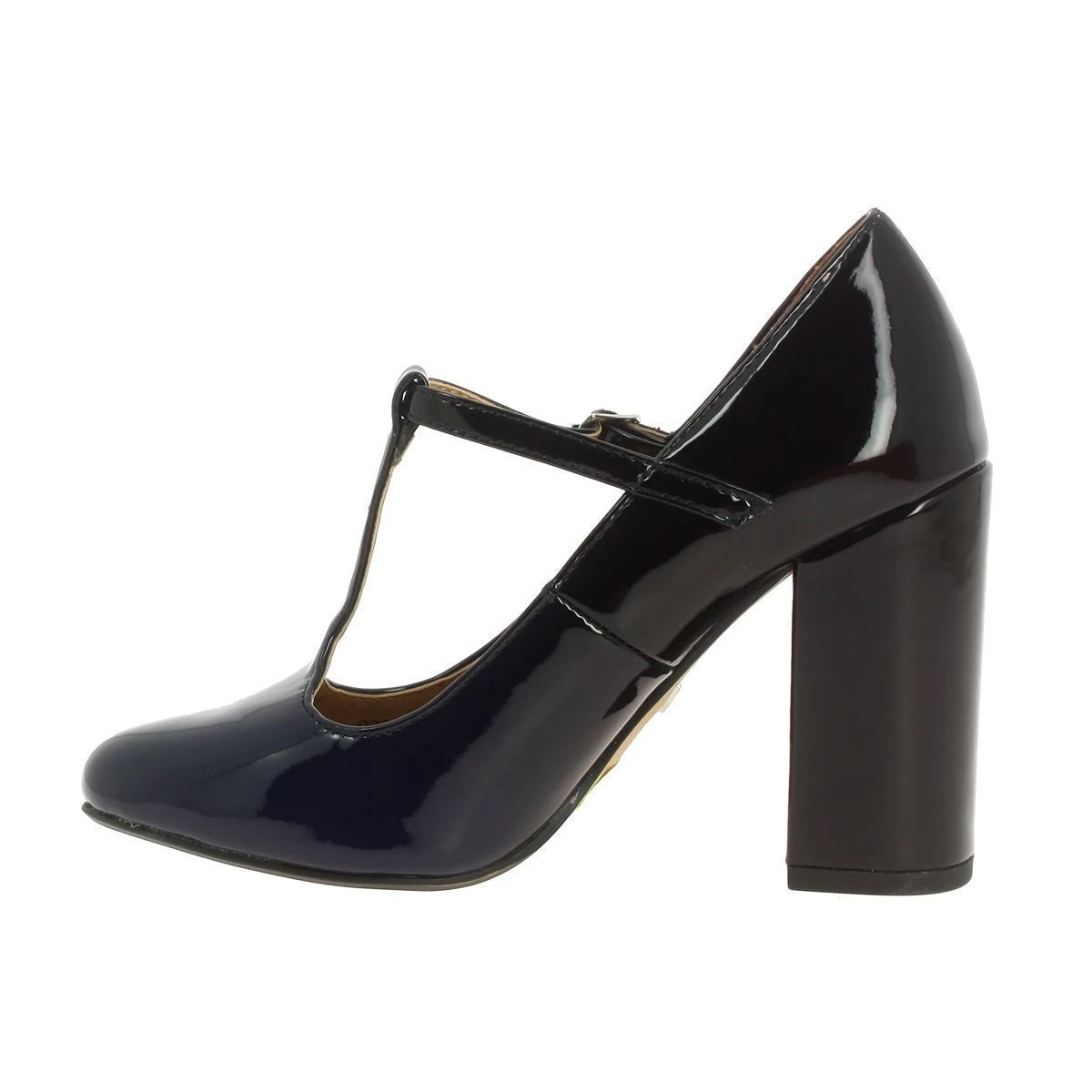 Escarpin à talon femme de la marque Mariamare modèle 61296 en simili cuir verni bleu.Forme salomé. Bride à boucle.Joli dégradé de bleu. Talon de 9,5 cm.Semelle de propreté en cuir.