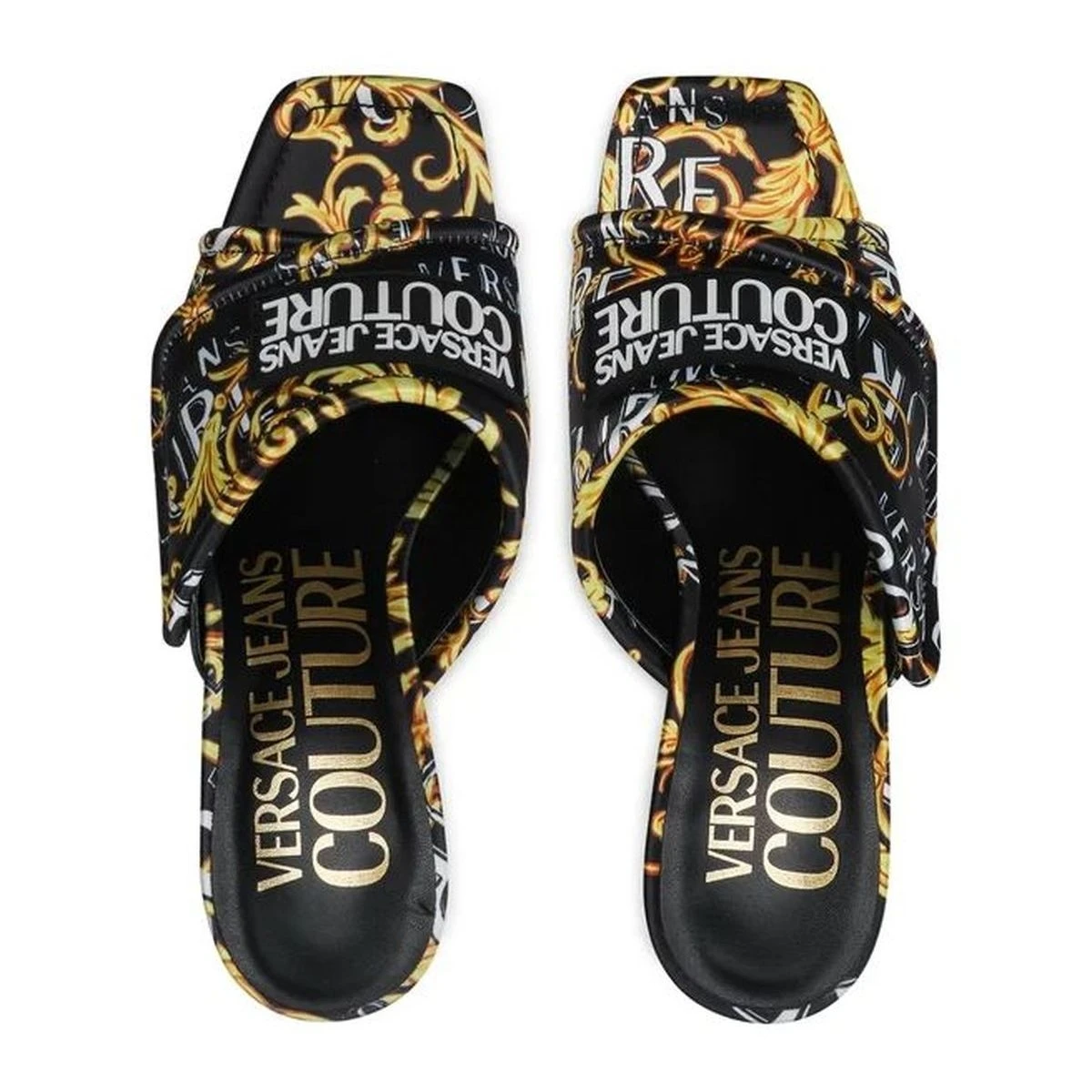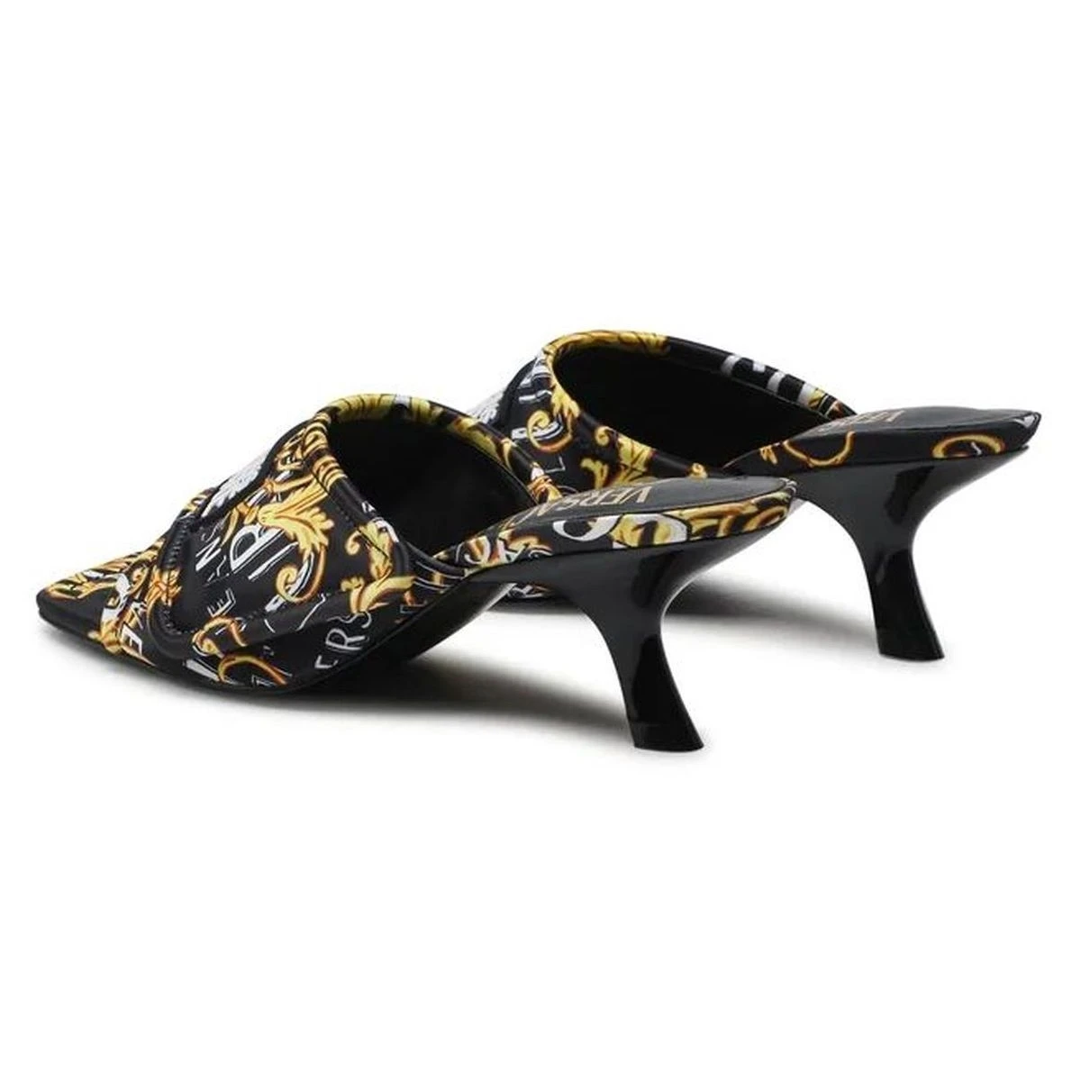 Elégantes et chics, ces mules à talon Versace Jeans Couture sont idéales pour ajouter une touche de glamour à une tenue de soirée ou pour donner une allure sophistiquée à une tenue décontractée.