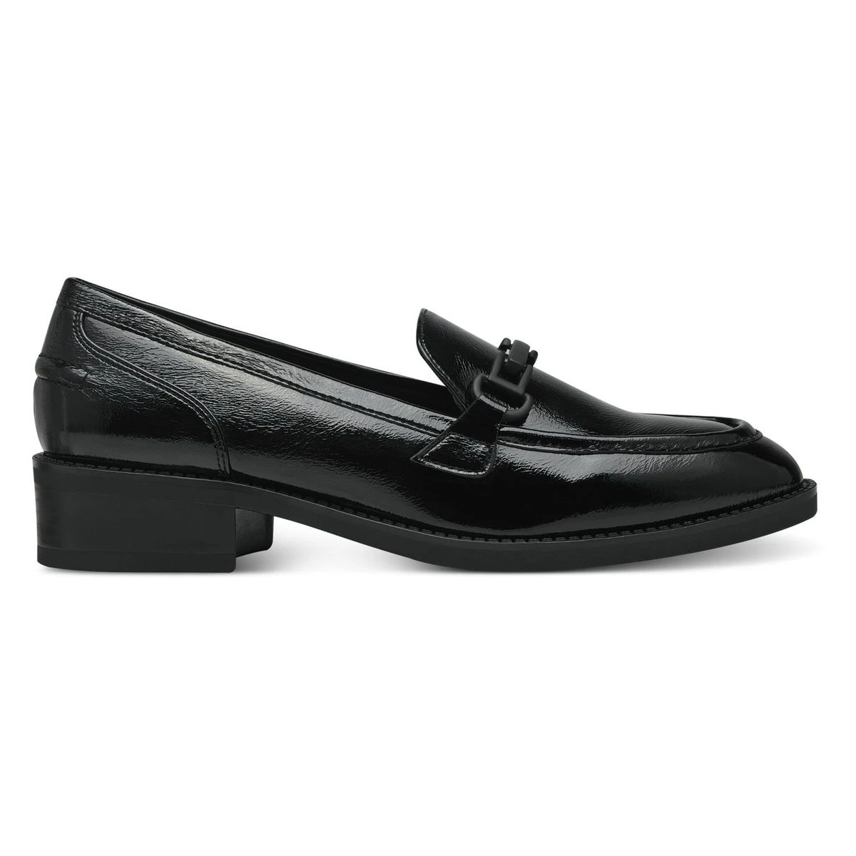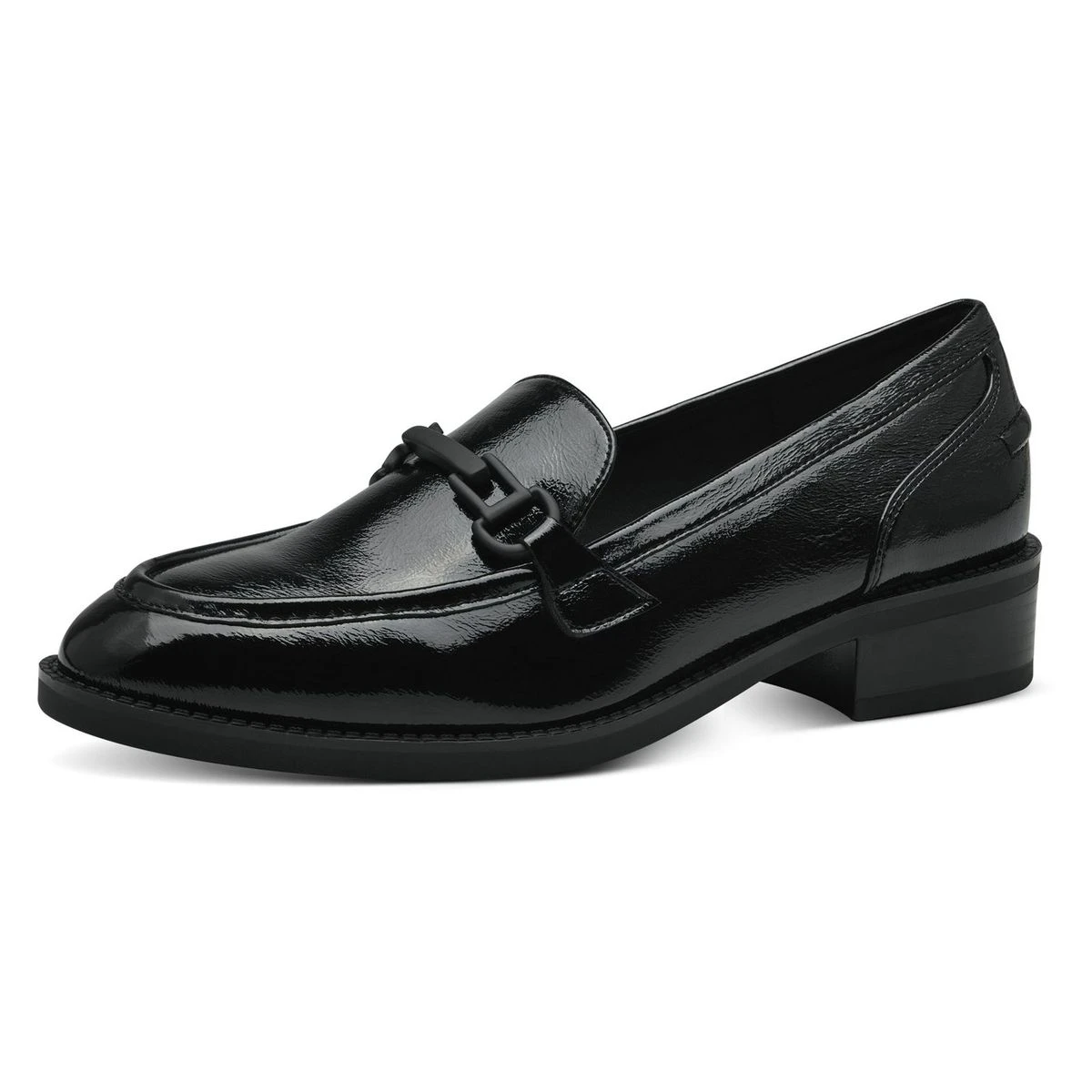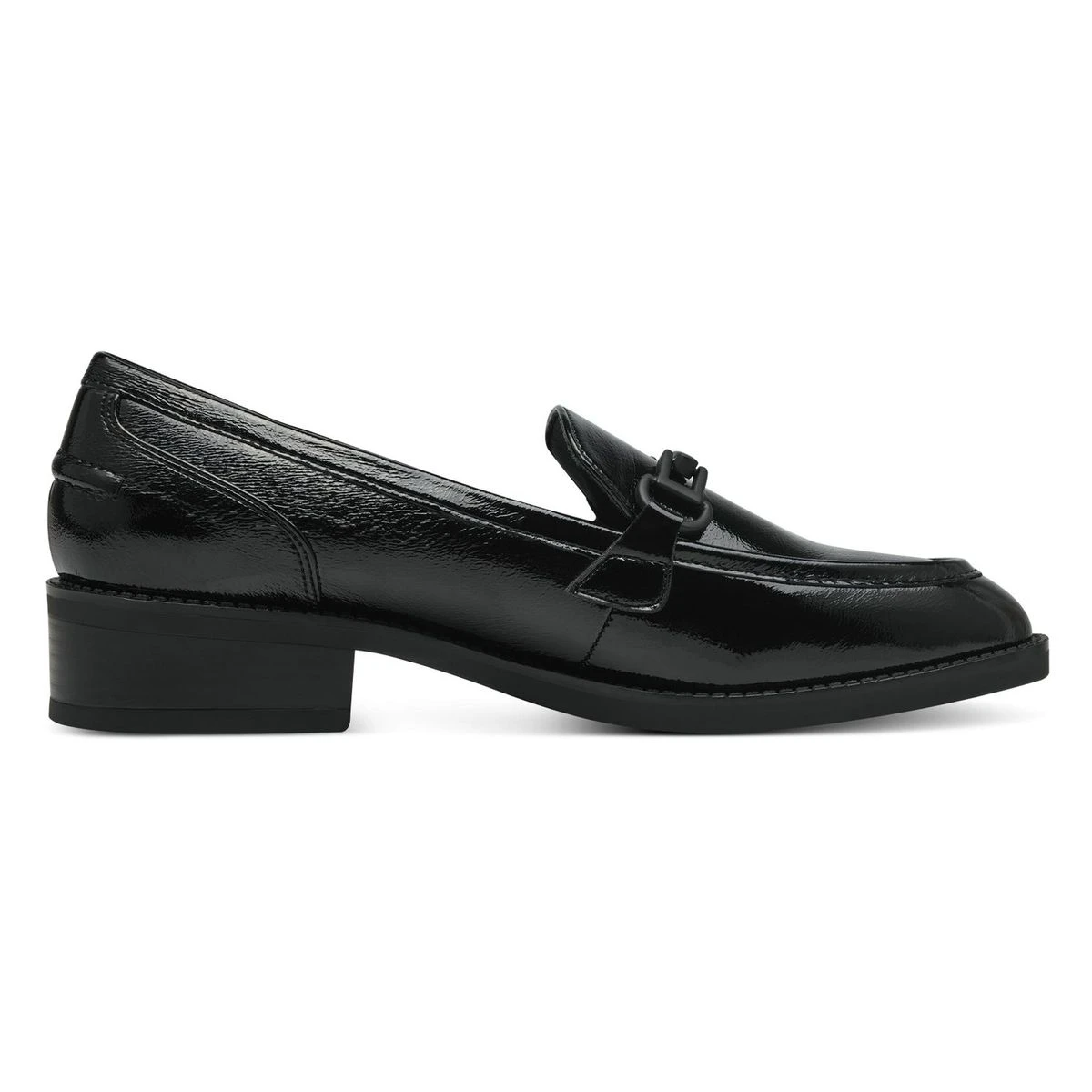Mocassin femme en simili cuir verni noir de la marque Tamaris.