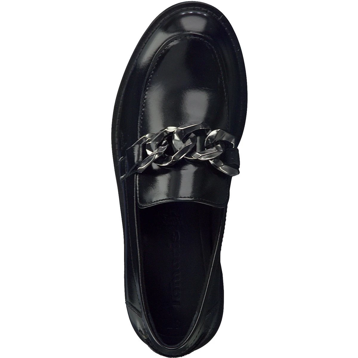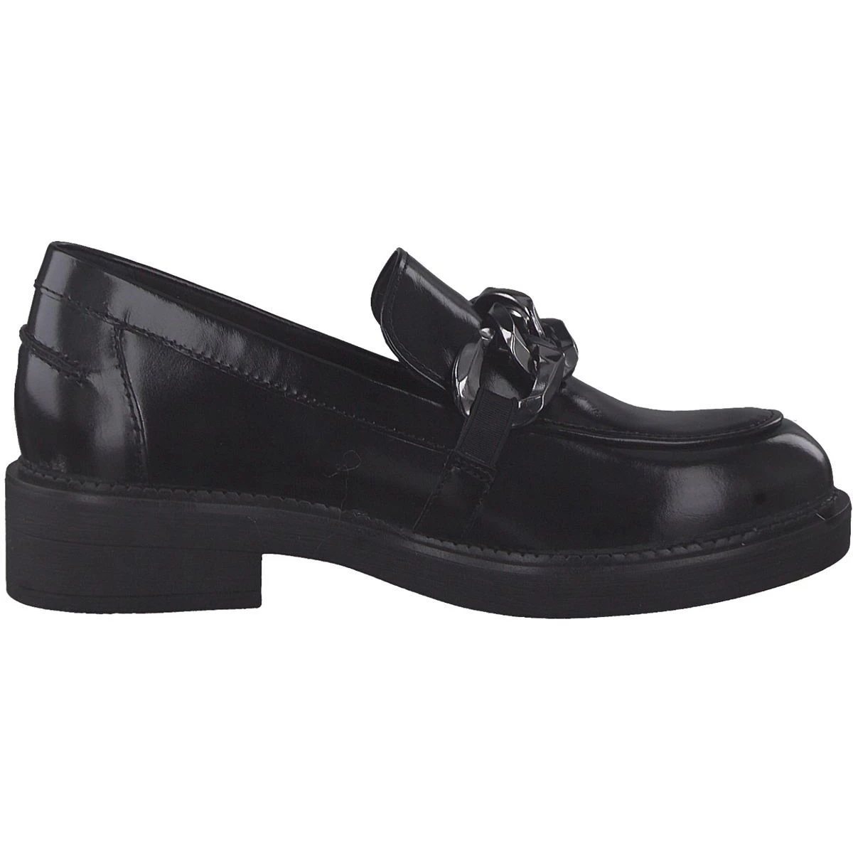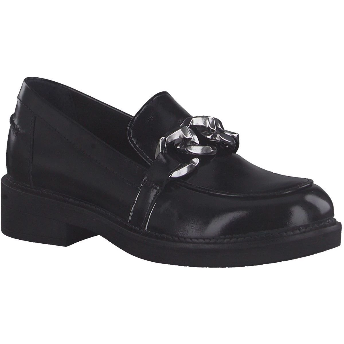 Confortable, ce mocassin affiche un cuir lisse glacé et une chaîne argenté XXL sur le dessus.