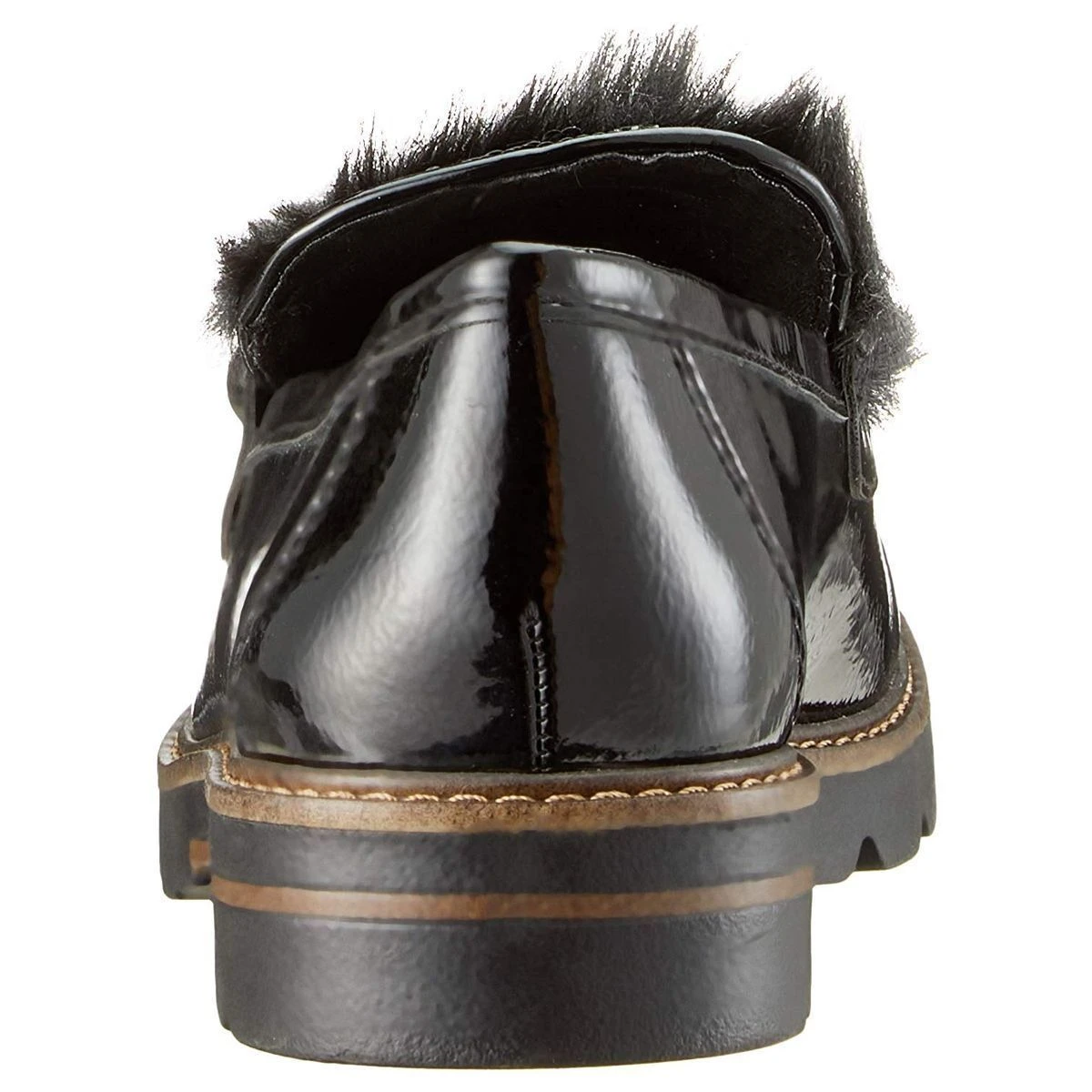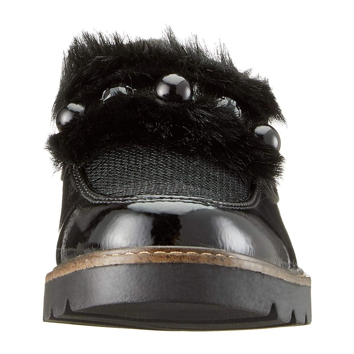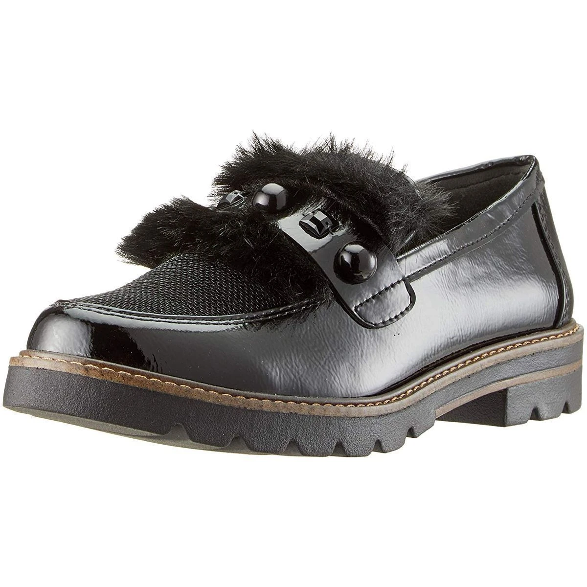 Mocassin femme Marco Tozzi modèle 24701 en simili cuir verni.Détails strass, fourrure et et perles ton sur ton.Coloris : noir.