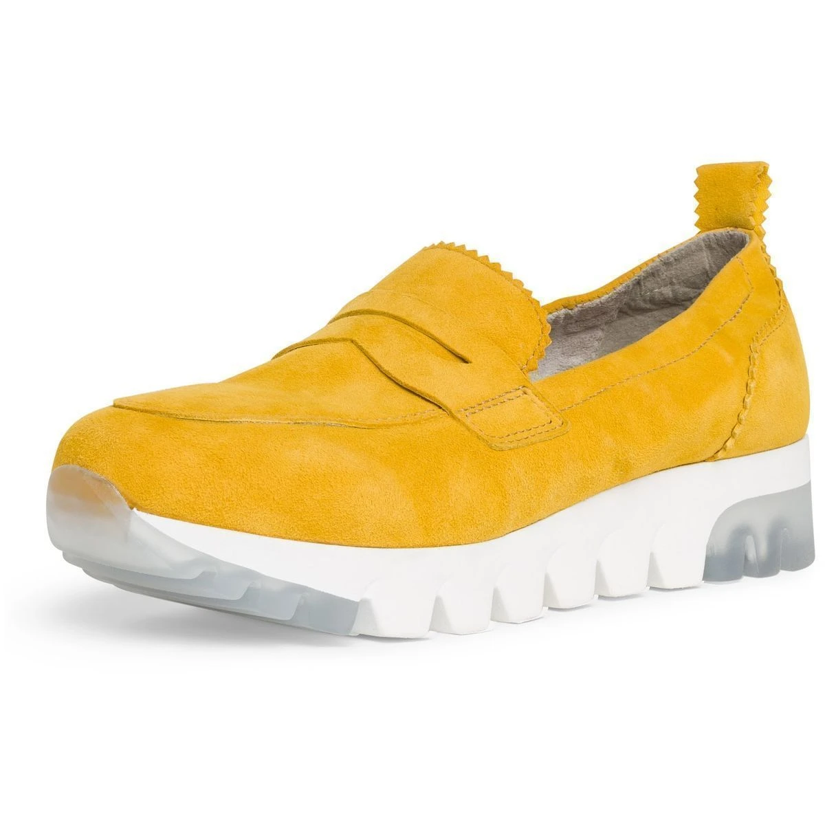 Mocassins femme de la marque Tamaris modèle Gazelle.Mocasins en cuir sur semelle street crantée.Semelle intérieure amovible.Coloris jaune sun.