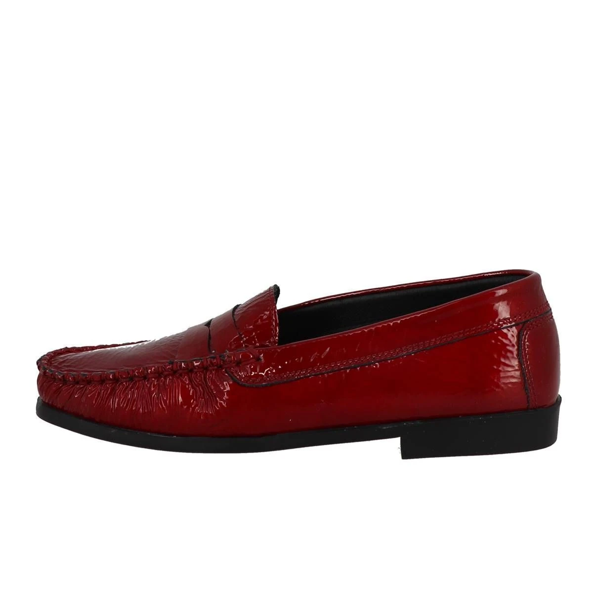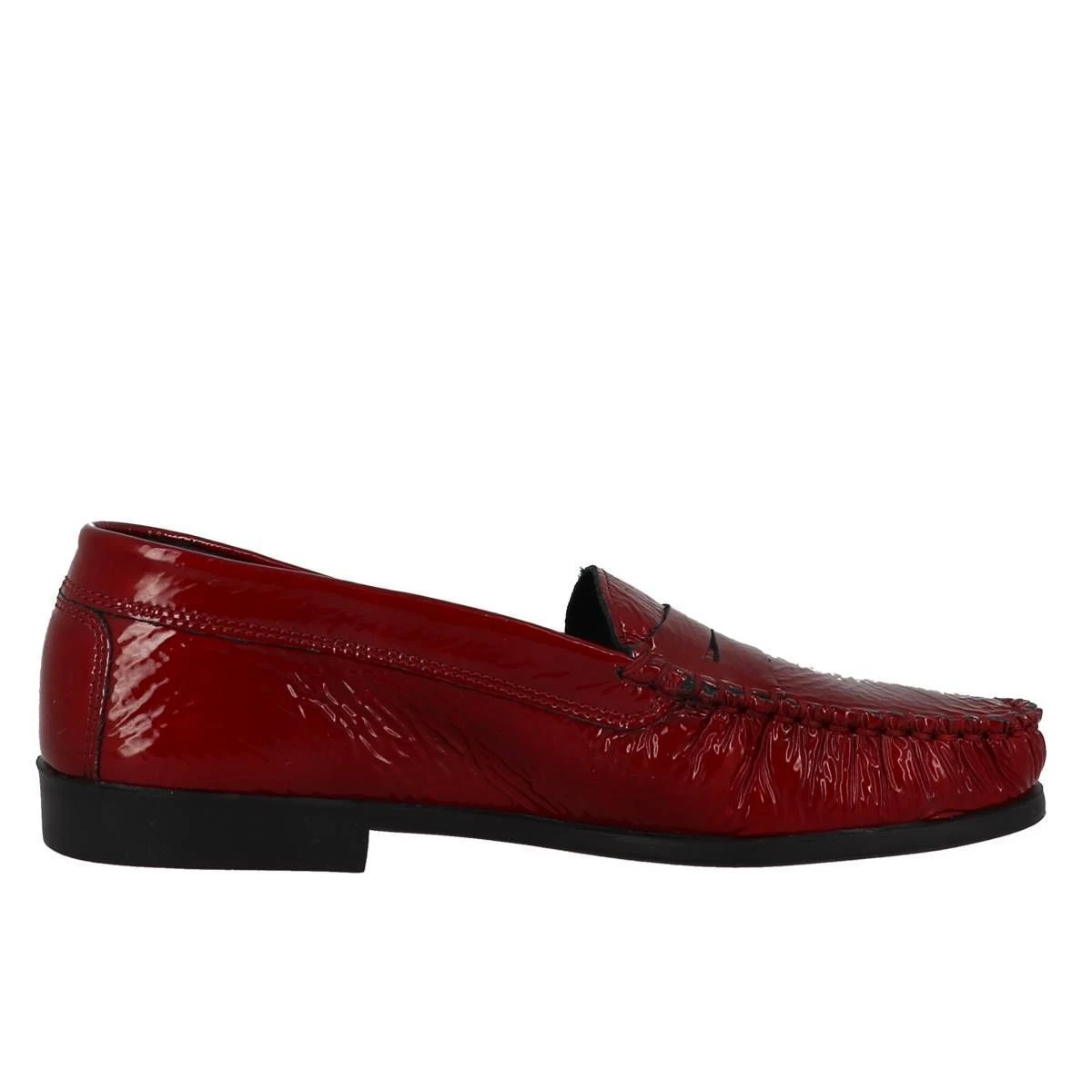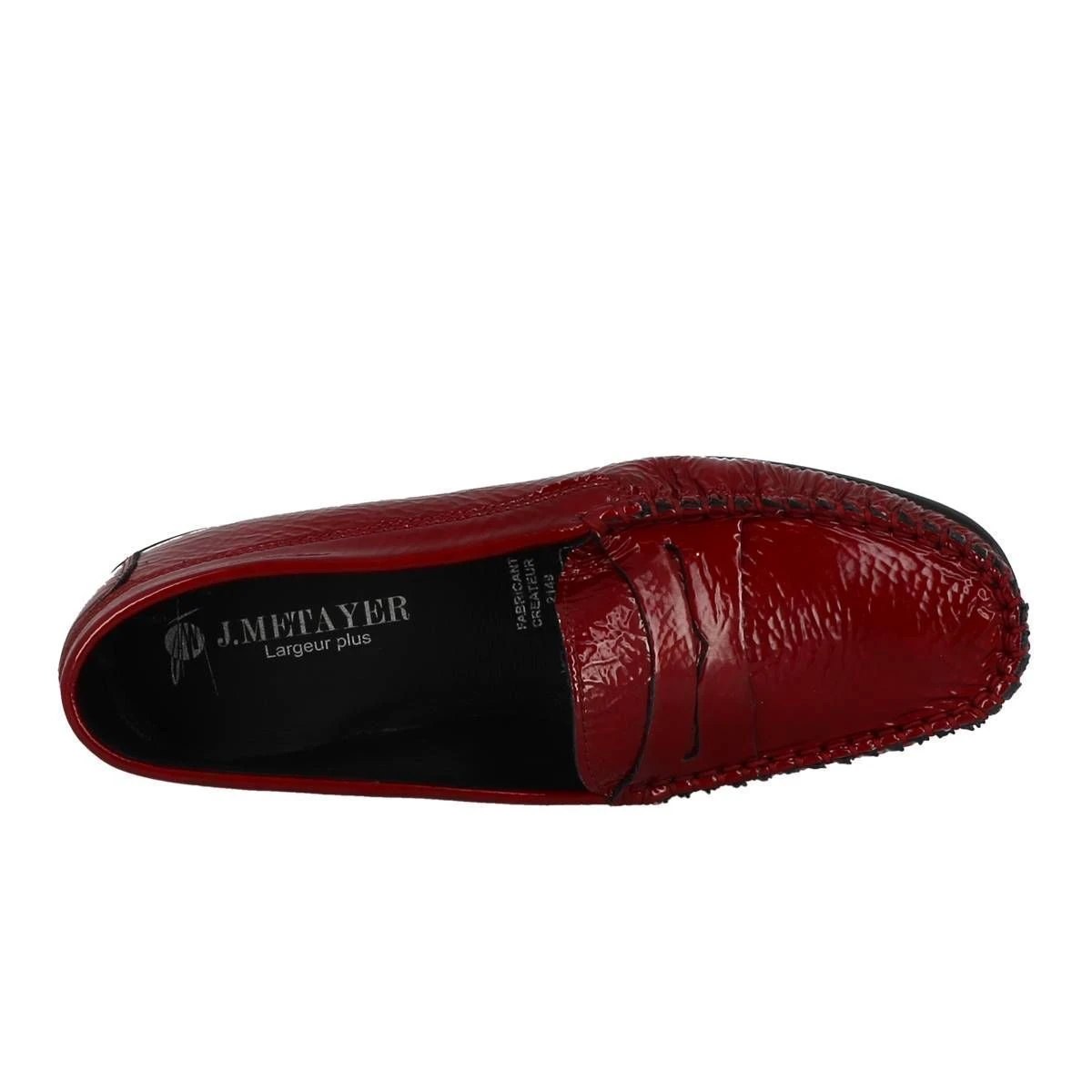 Mocassin en cuir verni pour femme de la marque Metayer modèle Requit.Doublure et première en cuir. Semelle souple en élastomère avec picots antidérapants.Très belles finitions et excellent confort. Petit talon de 1,5 cm.Convient aux pieds larges. Coloris : rouge foncé