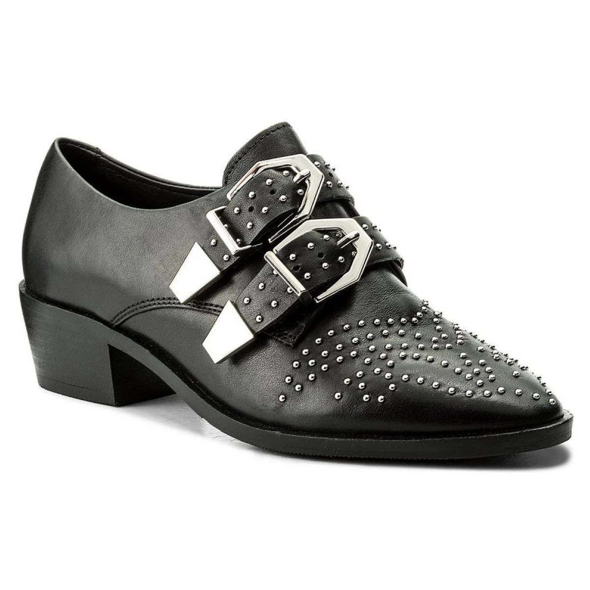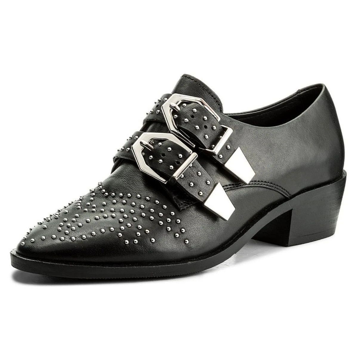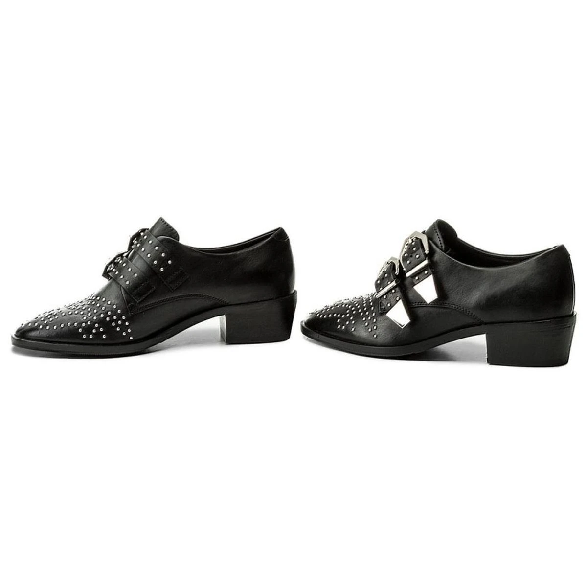 Chaussures femme à talons de la marque Bronx. Leur tige est fabriquée avec soin à partir de cuir pleine fleur. Ces chaussures se distinguent par leur décoration : métal argenté. coloris noir.