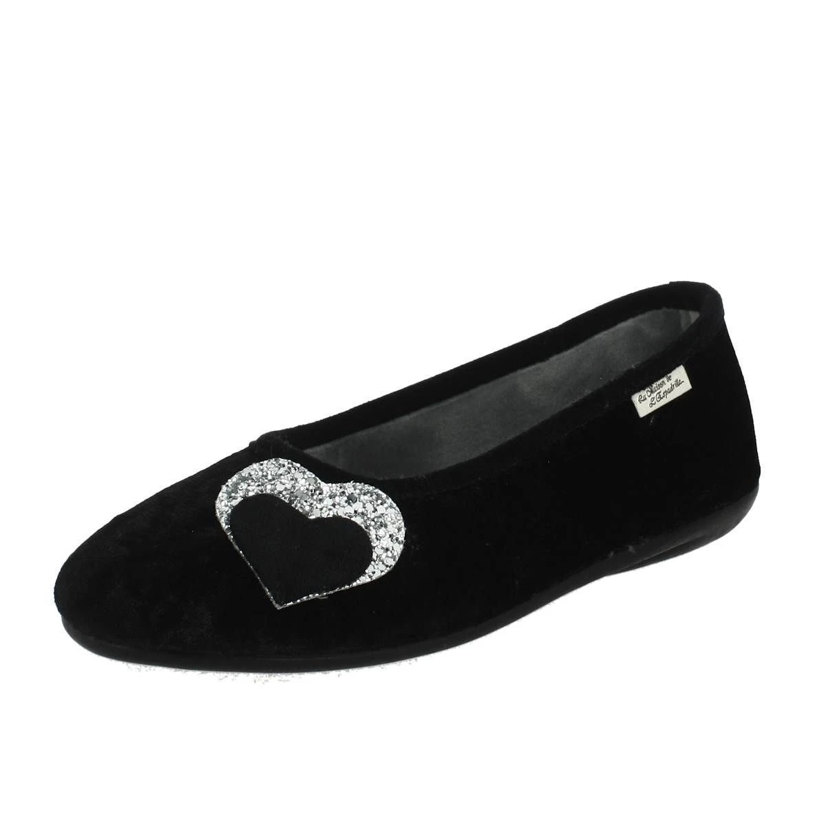 Pantoufles ballerines femme de la marque la maison de l’Espadrille modèle Coeur d’argent en velours . Coloris noir .