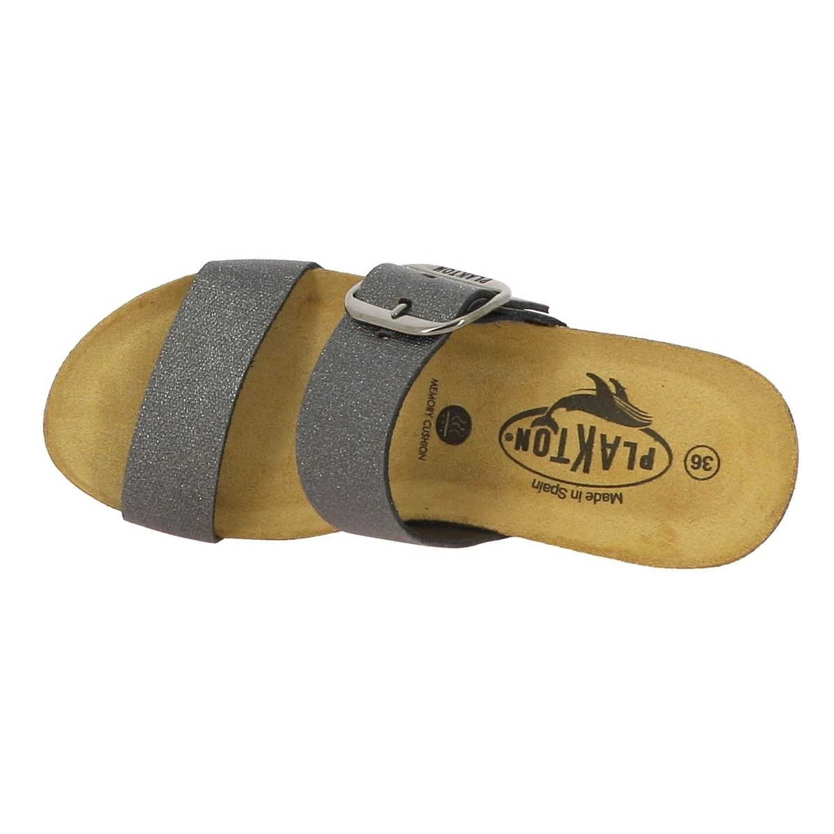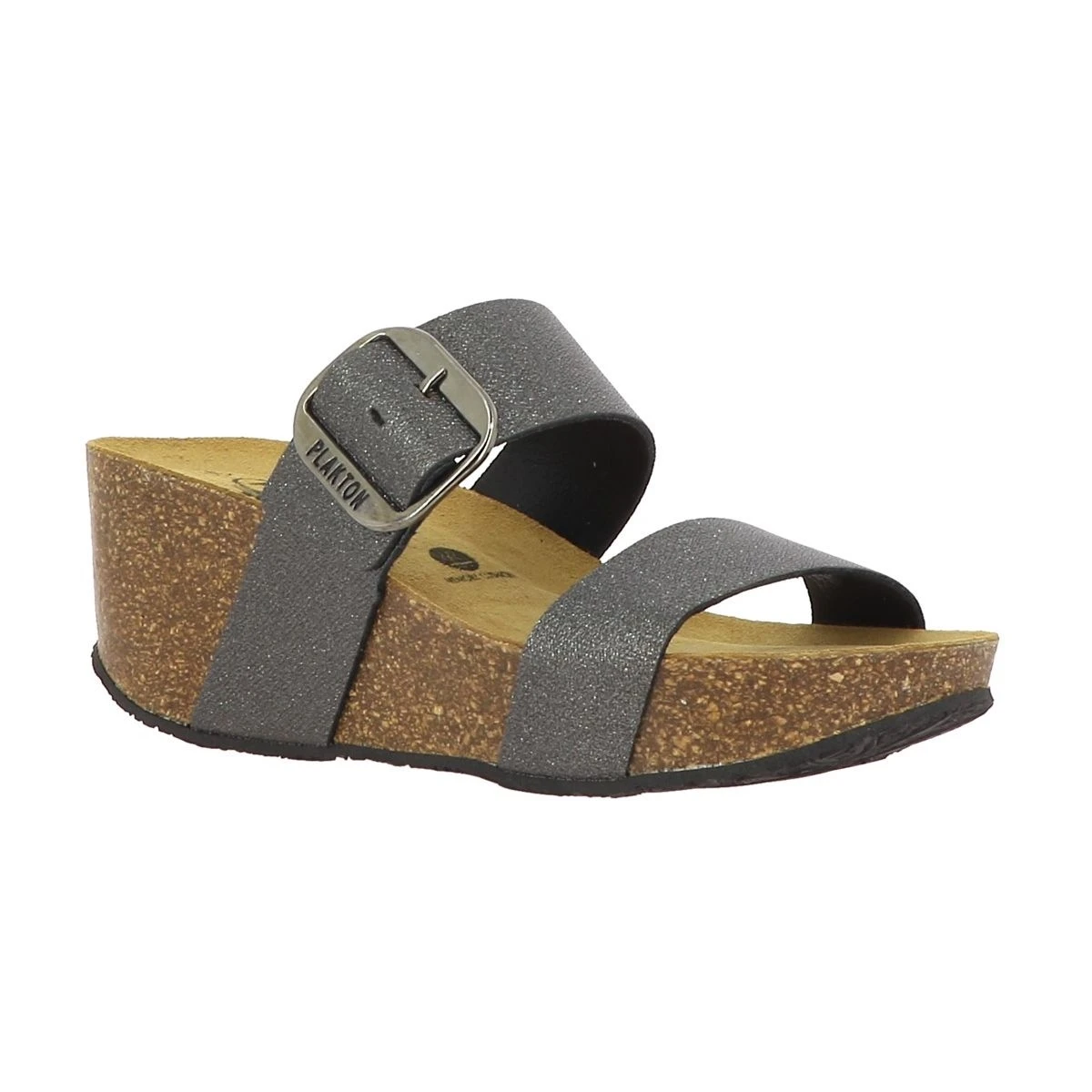 Les mules s’ajustent grâce à une boucle gold sur la bride supérieure.